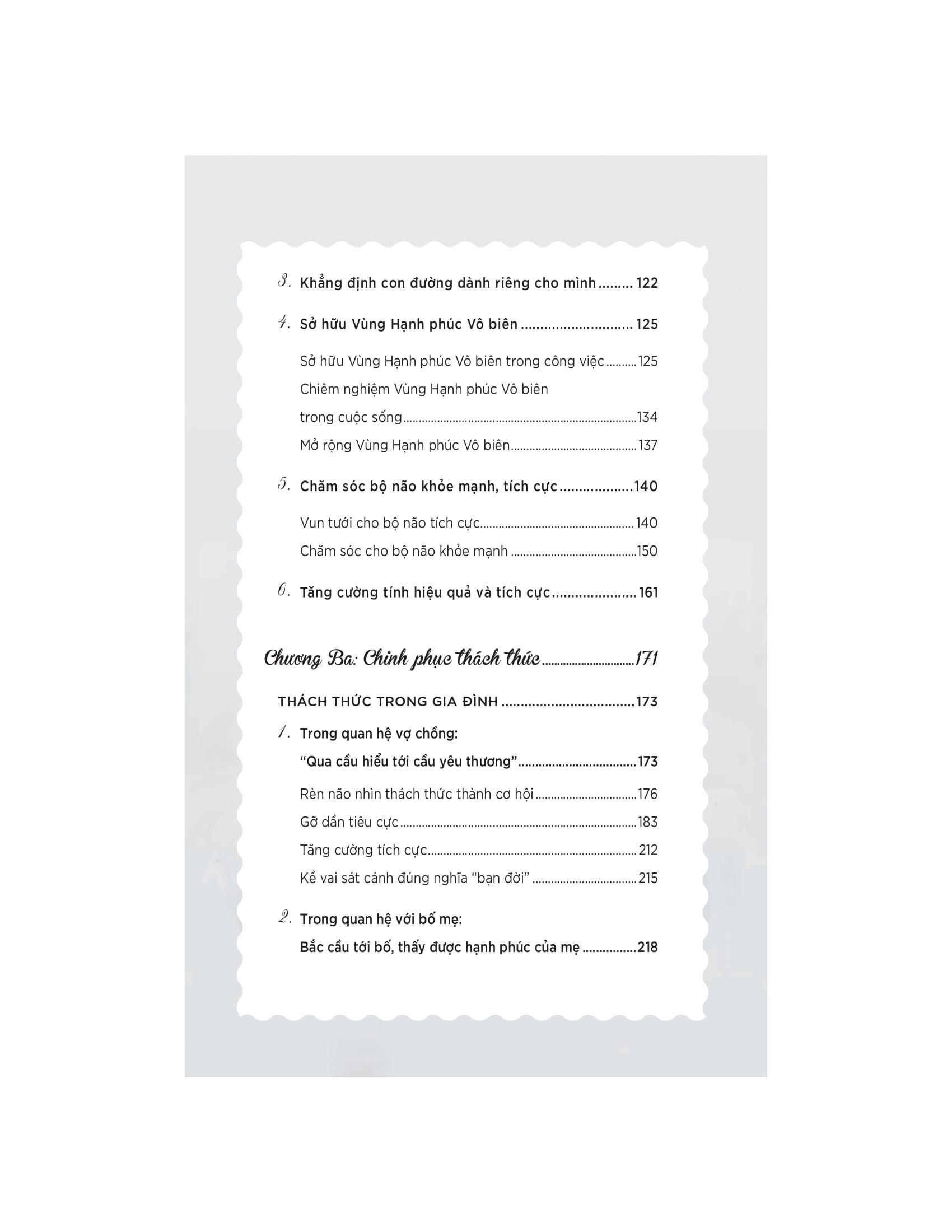 Cuốn sách mở ra một góc nhìn mới về hạnh phúc: Hạnh phúc không đến từ việc có tất cả, mà đến từ cách bạn lựa chọn và tận hưởng những gì m.ình đang có. Với những nghiên cứu sâu sắc về khoa học não bộ, tác giả Amy giúp bạn hiểu cách kiểm soát căng thẳng, nuôi dưỡng một tư duy tích cực và ứng dụng những công cụ thực tế để xây dựng một cuộc sống cân bằng. Bạn sẽ không chỉ đọc một câu chuyện, mà còn tìm thấy chính m.ình trong từng trang sách. Bạn sẽ học cách sắp xếp lại cuộc sống, học cách lắng nghe chính m.ình, và quan trọng nhất – học cách yêu thương bản thân mà không cảm thấy có lỗi. Chúng ta, những người phụ nữ, không sinh ra để sống trong những khuôn khổ hay giới hạn mà xã hội vô tình đặt lên vai. Chúng ta không chỉ là những người mẹ tận tụy, những người vợ hết lòng, hay những nhân viên chăm chỉ – chúng ta là những con người độc lập, có khát khao, có ước mơ, có quyền được sống một cuộc đời trọn vẹn.