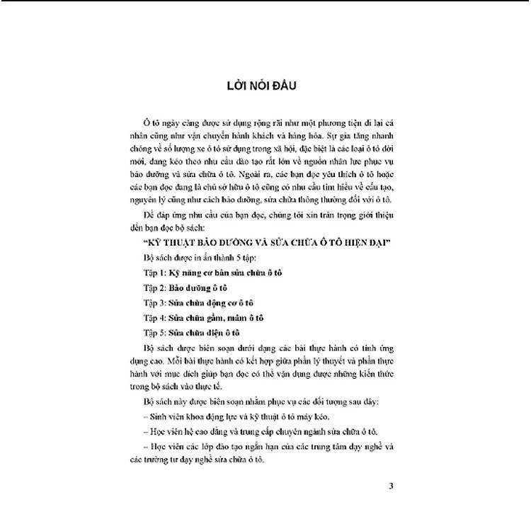 Ô tô ngày càng được sử dụng rộng rãi như một phương tiện đi lại cá nhân cũng như vận chuyển hành khách và hàng hóa. Sự gia tăng nhanh chóng về số lượng xe ô tô sử dụng trong xã hội, đặc biệt là các loại ô tô đời mới, đang kéo theo nhu cầu đào tạo rất lớn về nguồn nhân lực phục vụ bảo dưỡng và sữa chữa ô tô. Ngoài ra, các bạn đọc yêu thích ô tô hoặc đang là chủ sở hữu ô tô cũng có nhu cầu tìm hiểu về cấu tạo, nguyên lý cũng như cách bảo dưỡng, sữa chữa thông thường đối với ô tô.