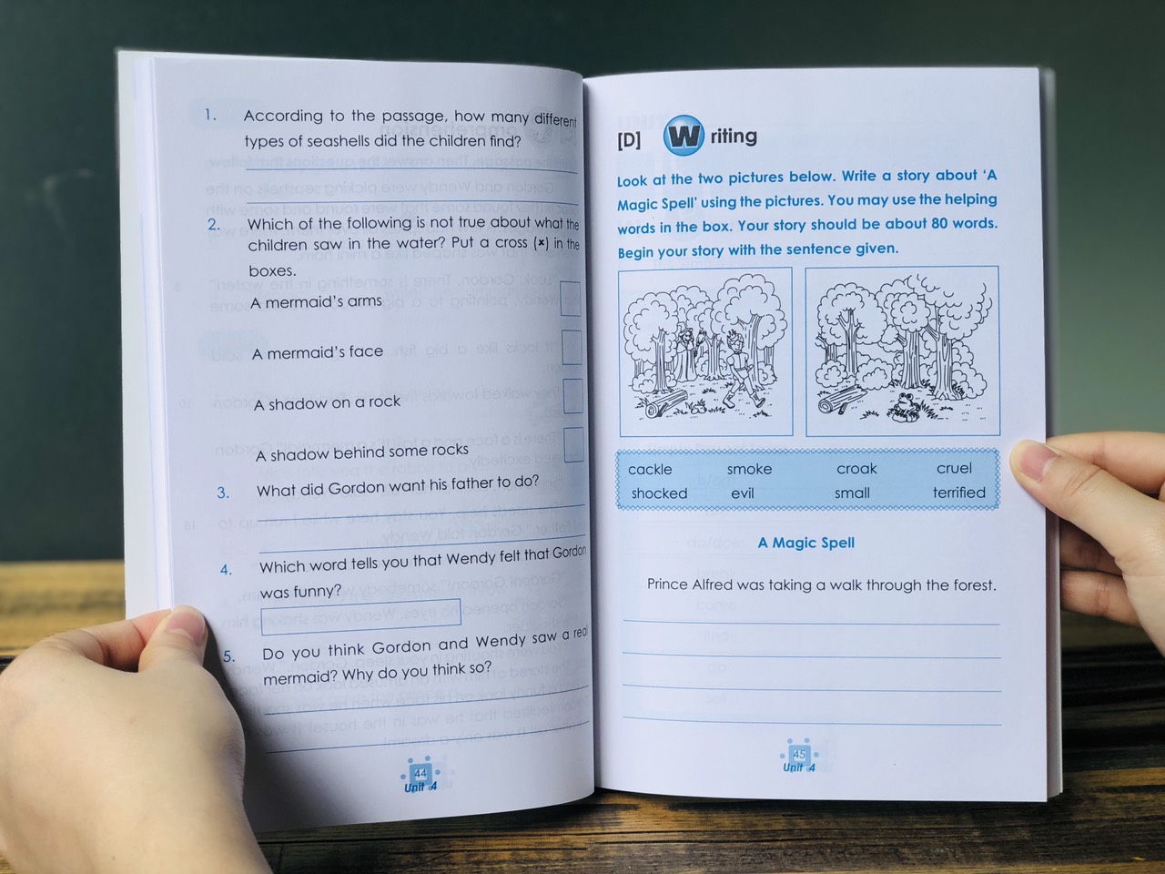 - Với bộ Learning English này, các môn học được tổng hợp hết trong 1 cuốn, nội dung đều đi vào từng chi tiết, được phân chia rõ ràng, dễ hiểu theo từng chủ đề, giúp trẻ xây dựng và nâng cao toàn diện tất cả các môn: Ngữ pháp, Từ vựng, Đọc hiểu và Viết