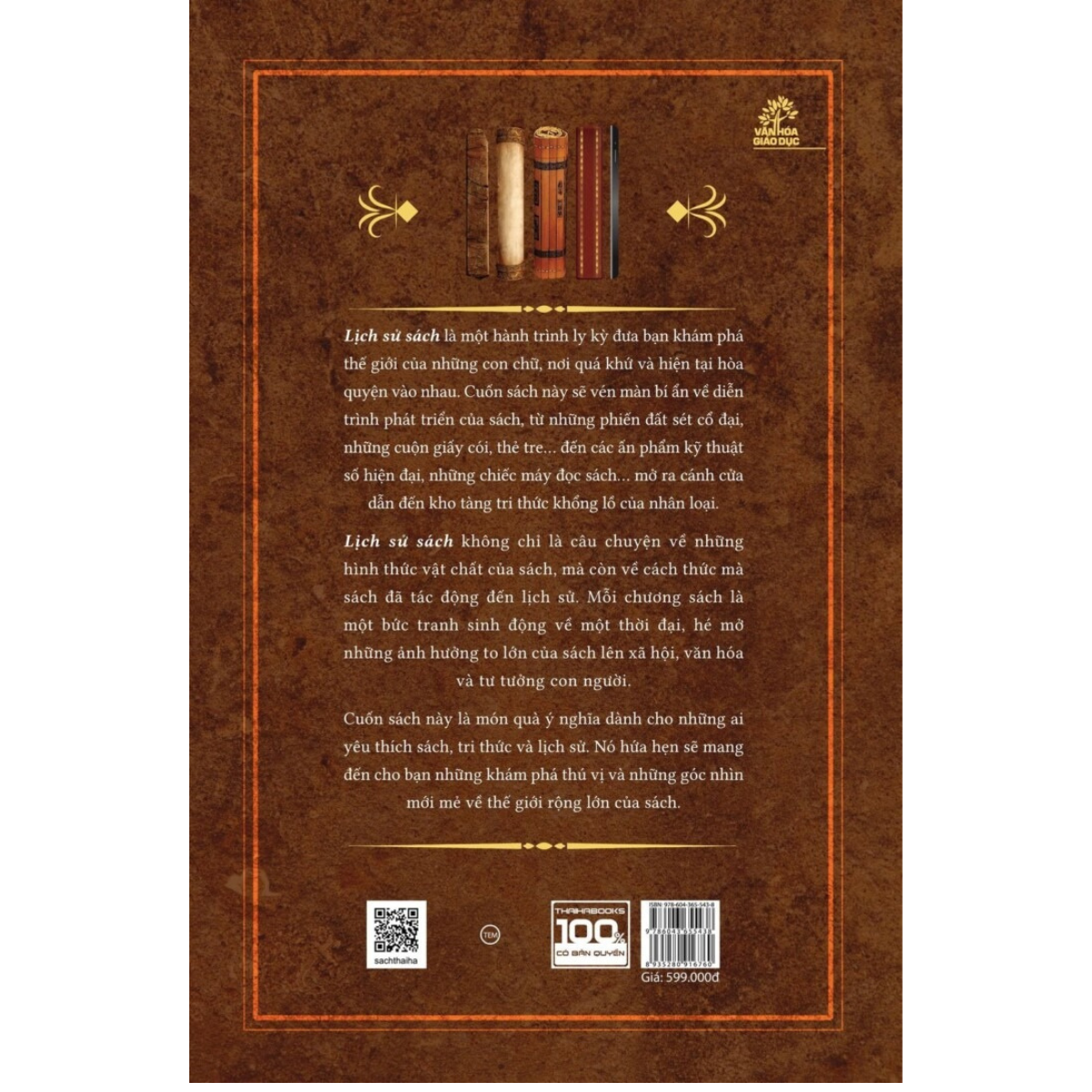Lịch sử sách sẽ phá vỡ cả hai rào cản đối với sự hiểu biết của chúng ta về sách, đó là: thời gian và địa lý. Cuốn sách đưa ta đi khắp thế giới, từ thời cổ đại đến hiện đại, từ những phiến đất sét mang dấu vết chữ hình nêm đến máy tính bảng điện tử có ký hiệu và hình ảnh kỹ thuật số.