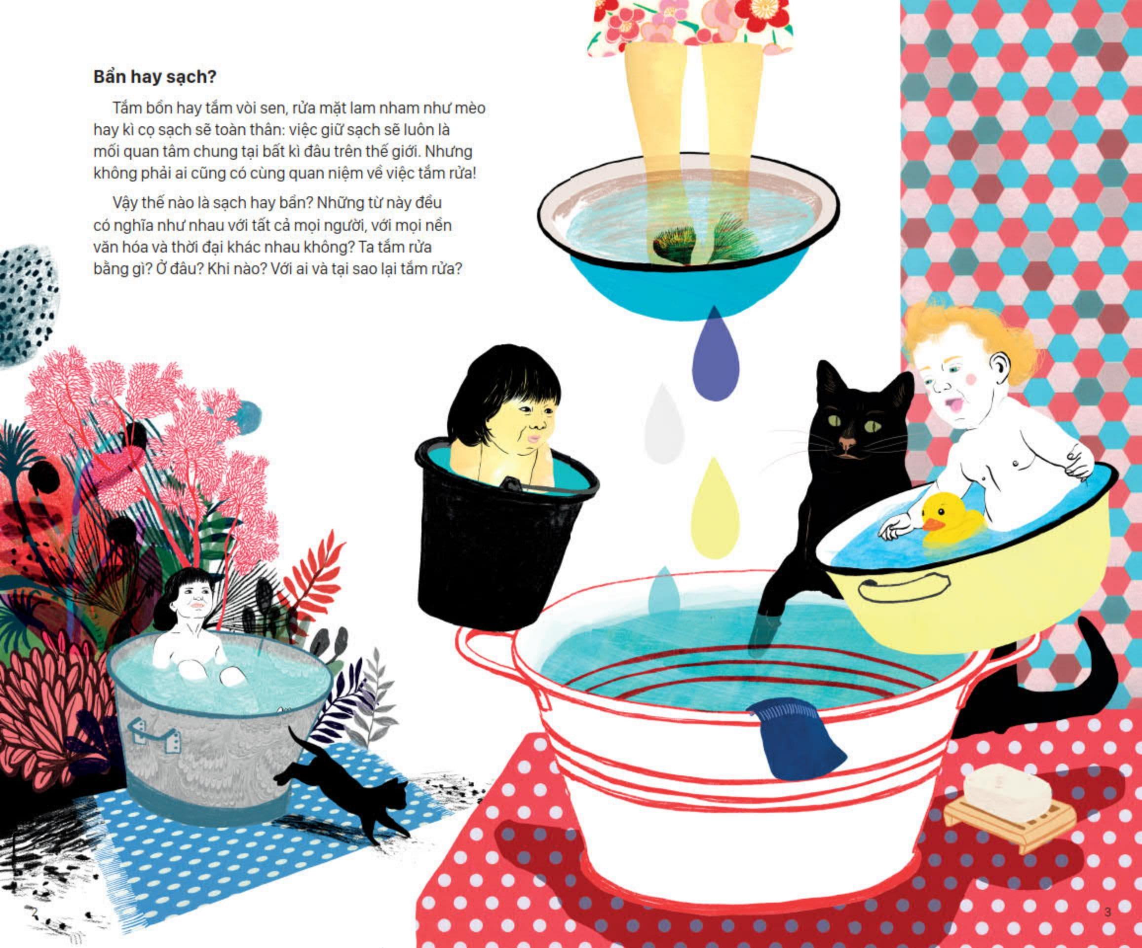 Tắm bồn hay tắm vòi sen, rửa mặt lem nhem như mèo hay kì cọ sạch sẽ toàn thân: việc giữ sạch sẽ luôn là mối quan tâm chung tại bất kì đâu trên thế giới. Nhưng không phải ai cũng có cùng quan niệm về việc tắm rửa! Vậy thế nào là sạch hay bẩn? Những từ này đều có nghĩa như nhau với tất cả mọi người, với mọi nền văn hóa và thời đại khác nhau không? Ta tắm rửa bằng gì? Ở đâu? Khi nào? Với ai và tại sao lại tắm rửa? Hãy khám phá nhiều điều thú vị về tập tục sinh hoạt của con người trên thế giới trong Lịch Sử Sinh Hoạt Của Loài Người - Tắm Rửa nhé!