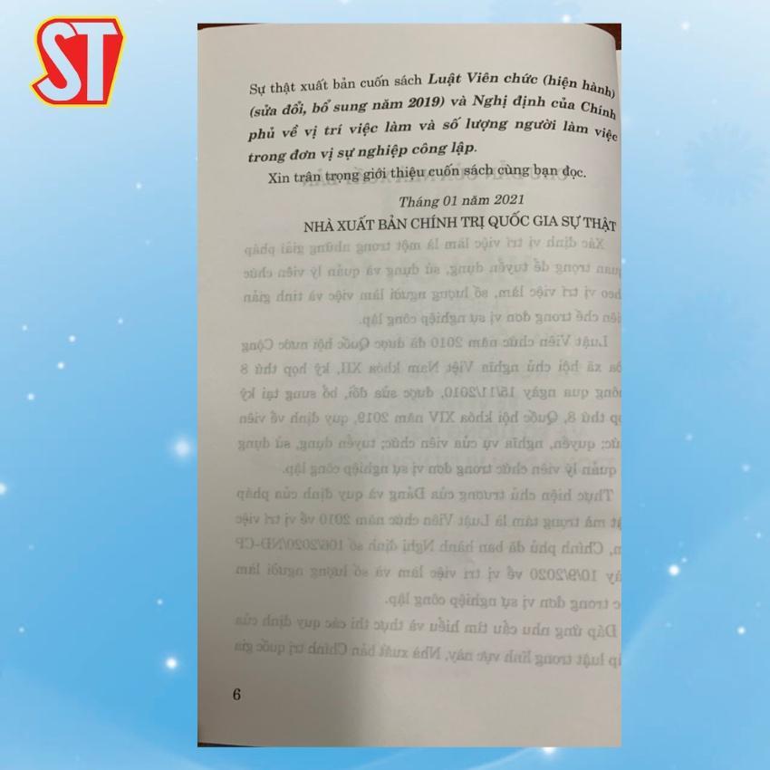 ✨Sách - Luật Viên Chức (Sửa Đổi, Bổ Sung Năm 2019) Và Nghị Định Của Chính Phủ Về Vị Trí Việc Làm Và Số Lượng - NXB Chính Trị Quốc Gia