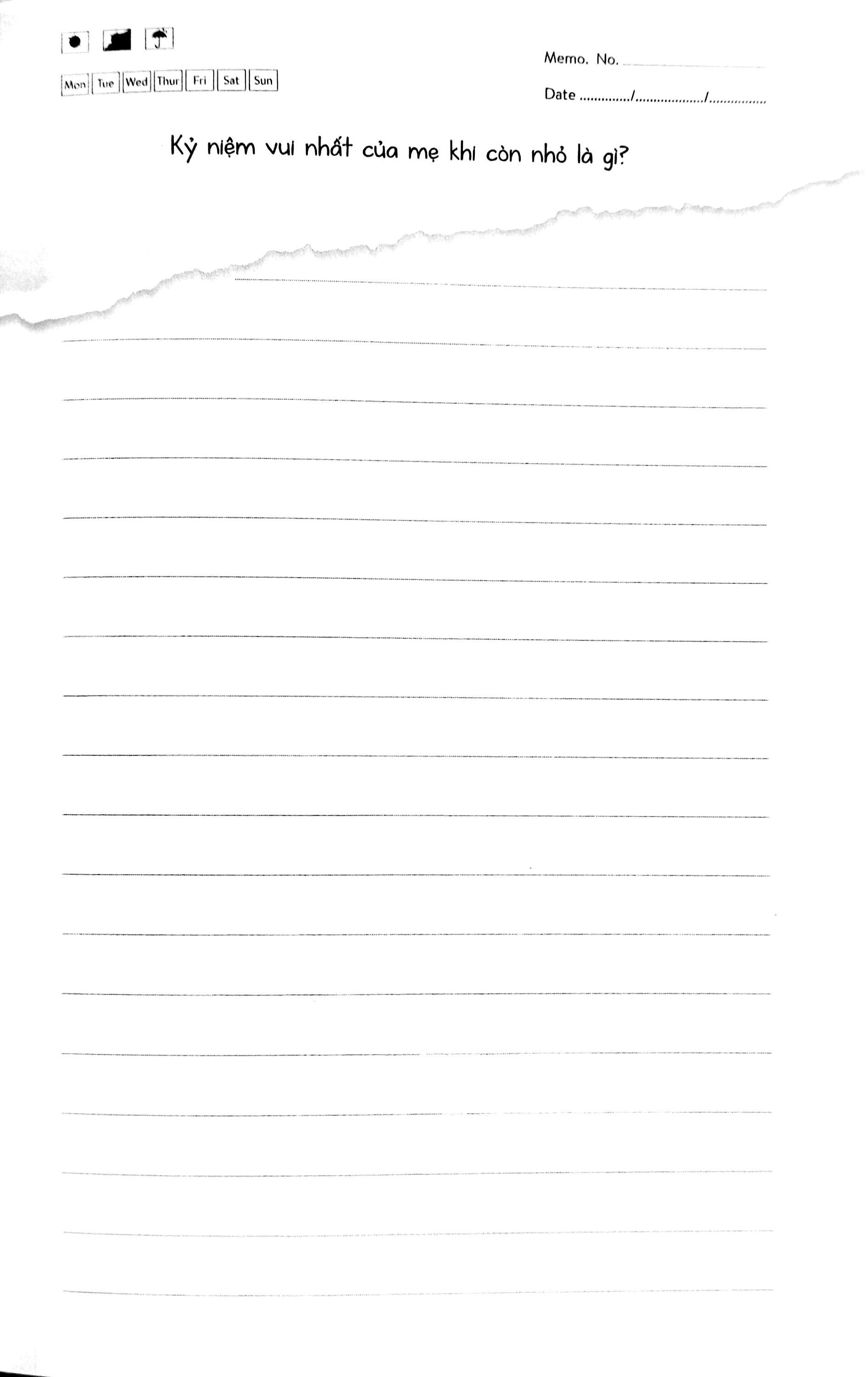 Những câu hỏi gợi ý sâu sắc: Giúp bố mẹ bắt đầu từ những ký ức tuổi thơ, thanh xuân, và hành trình làm cha mẹ mà không cần lo lắng phải viết gì.