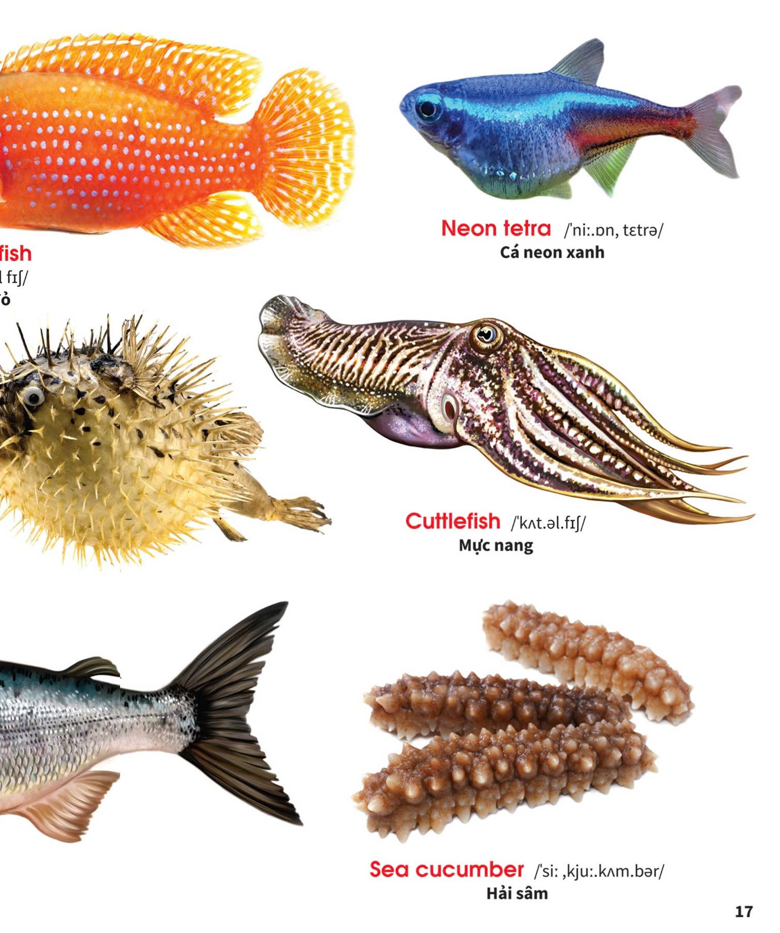 Bé sẽ yêu thích việc học tiếng Anh khi những bài học và hình ảnh minh họa vô cùng lôi cuốn, vì vậy cuốn sách Từ điển bằng hình - Thế giới động vật dưới nước được thiết kế vô cùng sáng tạo, hình ảnh bắt mắt sống động, để truyền tải các bài học một cách sinh động, dễ thương, hấp dẫn... tuyệt vời phải không các bé?