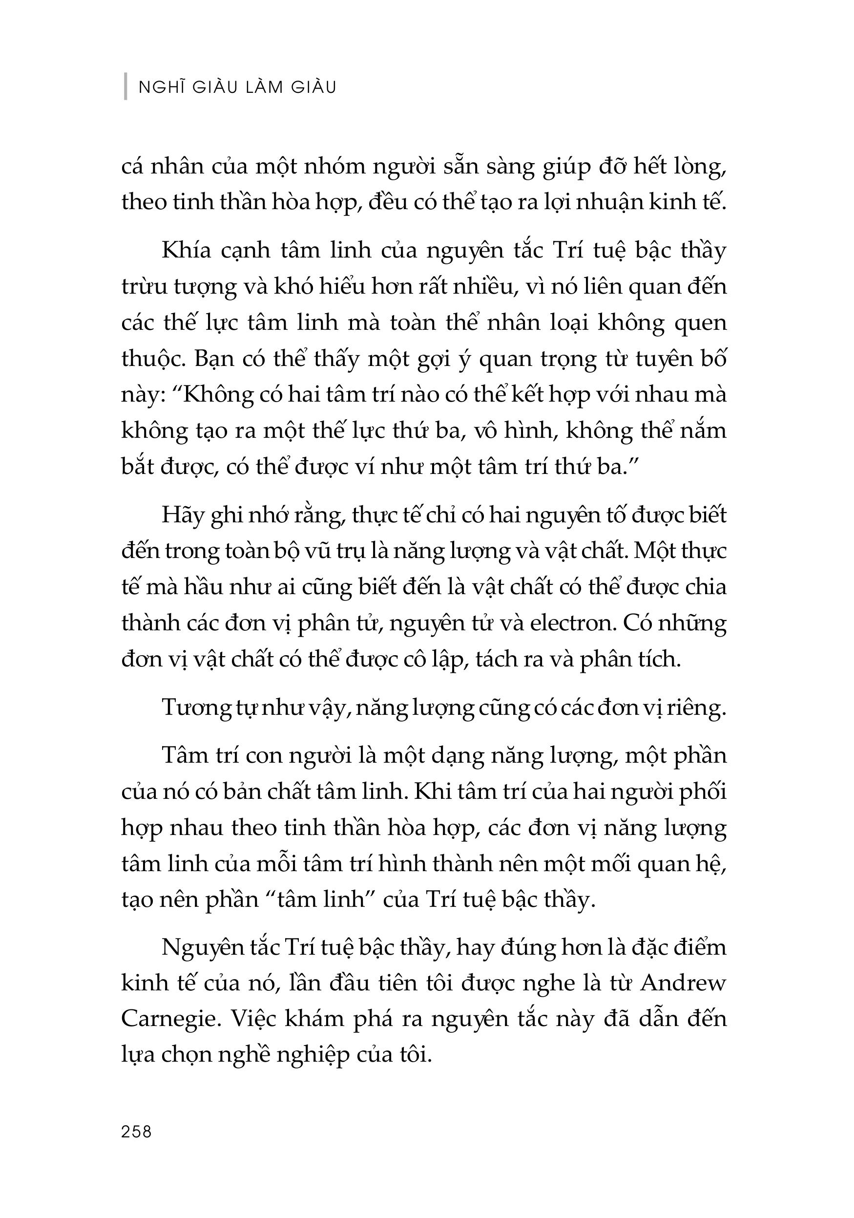 - Số trang: 392 trang GIỚI THIỆU SẢN PHẨM Nghĩ giàu làm giàu là một tác phẩm kinh điểncủa Napoleon Hill, được yêu thích trên toàn thế giới trong suốt nhiều thập kỷ qua. Cuốn sách chia sẻ những bí quyết làm giàu đã thay đổi cuộc đời của hơn 500 người thành công, được tác giả nghiên cứu và đúc kết trong nhiều năm nghiên cứu cuộc đời và sự nghiệp của những người giàu có, bao gồm Andrew Carnegie, Henry Ford và Thomas Edison. Với 13 nguyên tắc ngắn gọn và đáng tin cậy, cuốn sách trình bày rõ ràng những kinh nghiệm quý báu giúp bất kỳ ai cũng có thể đạt được thành công như những nhân vật nổi tiếng và truyền cảm hứng. MỘT SỐ HÌNH ẢNH THAM KHẢO CAM KẾT