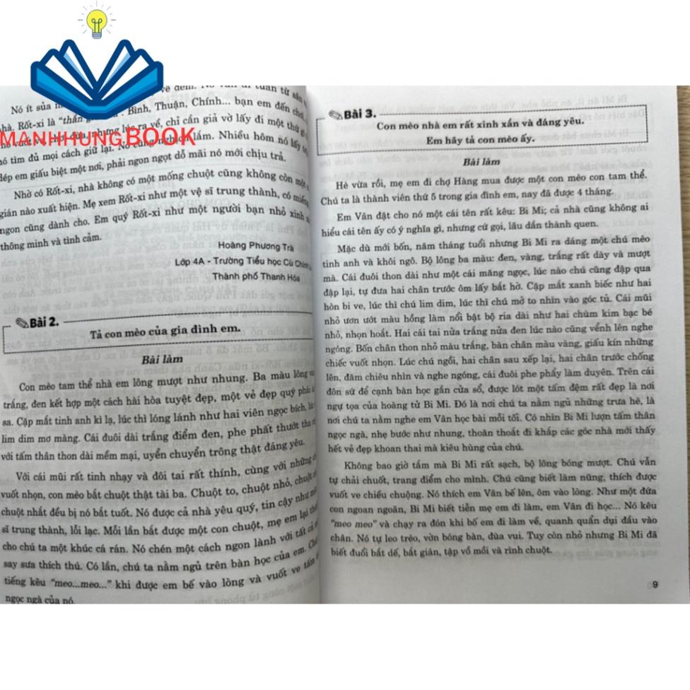 Công ty Học Liệu Sư Phạm giới thiệu: Các em học sinh thân mến! “Những bài văn miêu tả lớp 4” là cuốn thứ hai trong bộ sách 4 cuốn Văn miêu tả ở Bậc Tiểu học. Các bài văn tả người, tả vật, tả cảnh được tuyển chọn trong cuốn sách này, phần lớn là của các em học sinh mà chúng tôi đã được một số thầy cô giáo giỏi đang giảng dạy trong một số trường Tiểu học nhiệt tình giúp tư liệu, tài liệu. Có bài văn làm tại lớp, làm ở nhà. Có bài văn thi học sinh giỏi ở trường, ở khối lớp. Có bài văn đạt điểm cao, đạt giải cao trong một số kì thi học sinh giỏi môn Tiếng Việt cấp quận, huyện, tỉnh, thành phố. Trong quá trình tuyển chọn, chúng tôi vẫn giữ nguyên diện mạo và nội dung bài văn của tác giả tuổi thơ. Những bài văn miêu tả được chọn lọc sẽ là tài liệu đọc tham khảo quý báu đối với các em học sinh lớp 4 gần xa, dùng để tự đọc và tự học, vươn lên họ