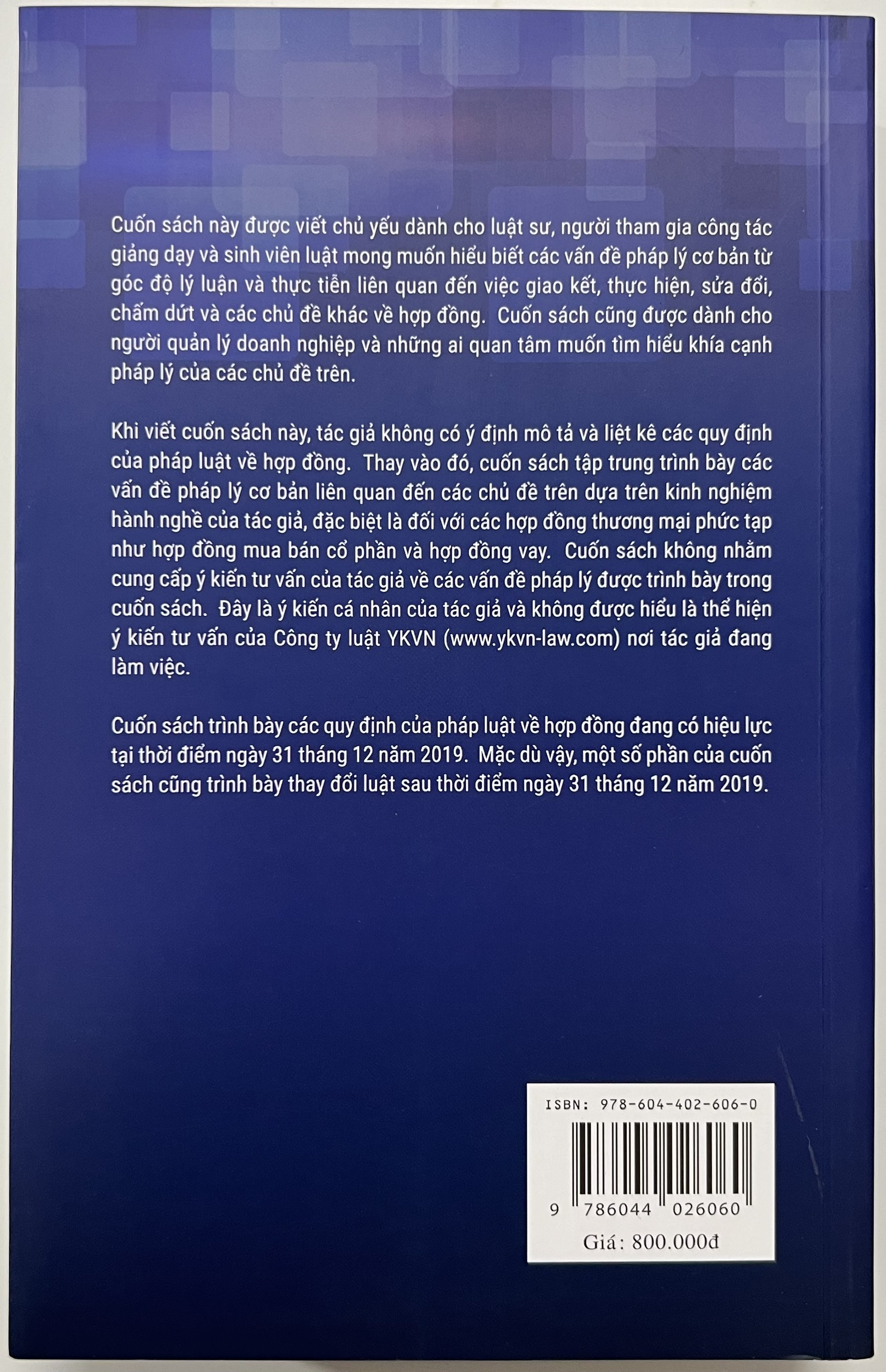 Công ty phát hành: Công ty TNHH Sách Á Châu Tác Giả: Trương Nhật Quang NSX - NXB: Dân Trí Ngôn Ngữ: Tiếng Việt Loại Sản Phẩm: SÁCH CHÍNH TRỊ - PHÁP LÝ Kích Thước: 16 x 24 cm Hình Thức: Bìa mềm Số Trang: 880 Năm Xuất Bản: 2024 Sách Pháp luật về hợp đồng – Các vấn đề pháp lý cơ bản do Luật sư Trương Nhật Quang biên soạn. Trương Nhật Quang là luật sư điều hành công ty luật YKVN và phụ trách bộ phận tư vấn luật tài chính ngân hàng của YKVN. Luật sư Trương Nhật Quang điều hành YKVN từ năm 1999. Trước khi làm việc tại YKVN, Luật Sư Trương Nhật Quang đã làm việc tại công ty luật Mỹ WHite & Case từ năm 1994 đến năm 1999 Cuốn sách đầu tiên nghiên cứu một cách có hệ thống các vấn đề pháp luật về hợp đồng của Việt Nam từ góc độ lý thuyết và thực tiễn, tập trung vào các giao dịch tài chính và mua bán doanh nghiệp có yếu tố nước ngoài. Cuốn sách được trình bày với cấu trúc chương mục như sau: Chương 1. Giới thiệu chung về hợp đồng