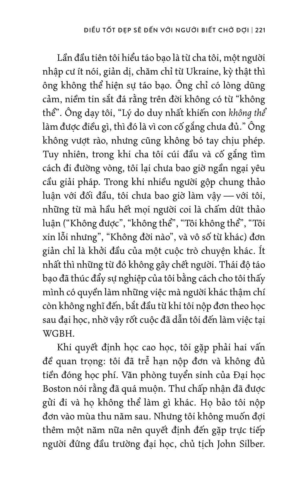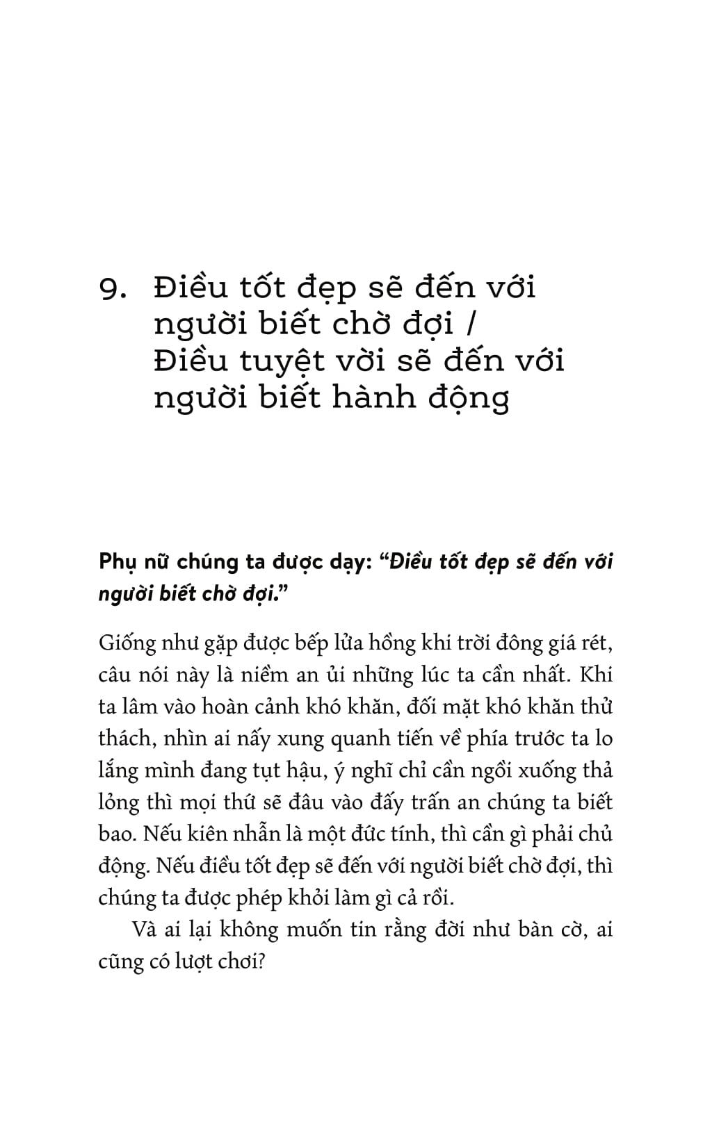 Phụ Nữ Đi Làm Đừng Để Mình Mắc Bẫy Ngộ Nhận - 15 Lies Women Are Told At Work Là người phụ nữ đi từ nhân viên cấp thấp nhất lên đến vị trí quyền lực cao nhất trong một tập đoàn truyền thông thuộc hàng lớn nhất nước Mỹ, Bonnie Hammer đúc kết hành trình cuộc đời để viết Phụ nữ đi làm đừng để m.ình mắc bẫy ngộ nhận — không hề là câu chuyện cổ tích công sở! Rất có tâm, kiểu “chỗ chị em bảo nhau”, Bonnie Hammer vạch trần 15 quan niệm từ lâu đã thành khẩu hiệu hô hào, cài đặt não trạng phụ nữ bằng truyền thông đại chúng. Ở nơi làm việc, các quan niệm này biến thành những lời hứa hẹn, ngụy biện, ngộ nhận khiến cho phần lớn lao động nữ hoặc suốt đời giậm chân tại chỗ hoặc cảm thấy m.ình “không đủ giỏi”! Và không chỉ cho thấy 15 quan niệm đó dẫn dắt phụ nữ đến đâu, tác giả — phó chủ tịch NBCUniversal (một trong những phụ nữ quyền lực của điện ảnh-truyền hình-truyền thông) — đề ra 15 quan điểm đối trọng súc tích, dễ dàng triển khai thành sách lược “phá bẫy ngộ nhận” để tiến lên. Chẳng hạn, quan niệm rất thường nghe: “Theo đuổi ước mơ”. Ngộ nhận về theo đuổi giấc mơ rất dễ đưa phụ nữ vào ngõ cụt! Sự thực là phải biết nhìn ra và biết cách “Theo đuổi cơ hội.” Hoặc “Biết giá trị của m.ình” sao bằng “Biết làm cho m.ình có giá trị”... Và rất nhiều lầm tưởng lẫn ngộ nhận khác mà chắc chắn phụ nữ đi làm nào cũng sẽ bắt gặp chính m.ình trong ít nhất hơn một điều. Rất dễ liên hệ trong thế giới phụ nữ công sở và nữ doanh nhân! “Nữ hoàng truyền hình cáp” Bonnie Hammer viết Phụ nữ đi làm đừng để m.ình mắc bẫy ngộ nhận không phải để bày cách cho tất cả phụ nữ vươn lên thành lãnh đạo. Mà là vươn lên thành tài sản giá trị của nơi làm việc — loại giá trị sẽ giữ bạn sinh tồn qua mọi bể dâu khủng hoảng do thay đổi của tổ chức và ngành nghề! Cô đã nói trong sách: “Cuộc đời của chúng ta cũng là nền tảng để kể chuyện — và nếu được tận dụng tối đa, những câu chuyện đời sẽ thú vị hơn nhiều (cũng như thực tế và bổ ích hơn nhiều) so với bất kỳ câu chuyện gì trên màn ảnh… Cuốn sách này cung cấp cho bạn các công cụ và sự thật (và thái độ) bạn cần để nắm quyền kiểm soát câu chuyện của m.ình và tự viết những chương tiếp theo.”