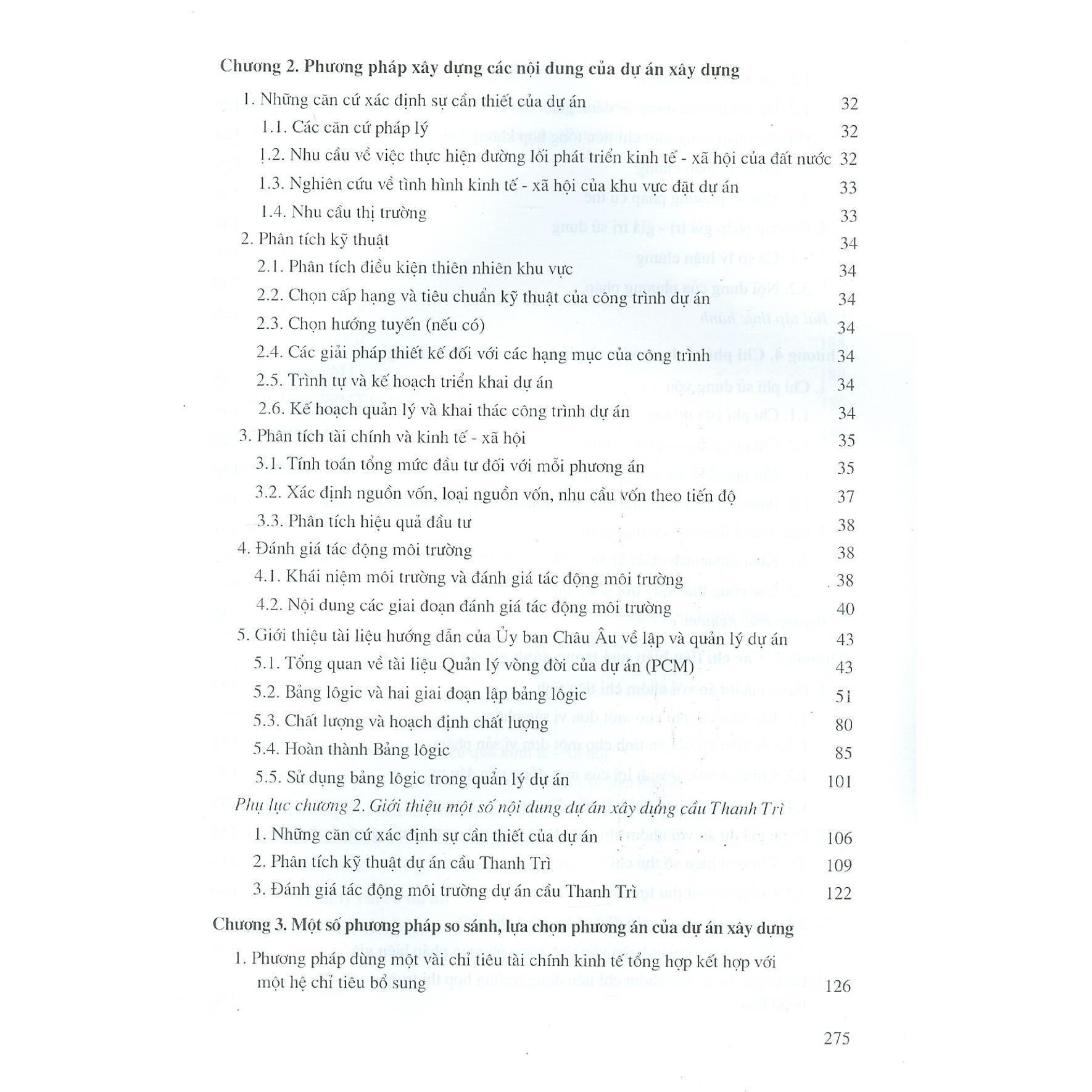 - Quyển 3: Quản lý dự án xây dựng - Giai đoạn thi công xây dựng công trình. Tài liệu này là quyển "Quản lý dự án xây dựng - Lập và thẩm định dự án" và đi sâu nghiên cứu các vấn đề từ khi dự án còn trong ý tưởng đầu tư đến khi được phê duyệt, có quyết định đầu tư. Trong quyển này, ngoài các ví dụ cụ thể, còn giới thiệu các nội dung chính của dự án đầu tư xây dựng cầu Thanh trì và các thực hành cụ thể gắn với dự án đó. Bộ tài liệu về quản lý dự án xây dựng có thể dùng để tham khảo hữu ích không chỉ cho các sinh viên, học viên các chuyên ngành kinh tế và quản lý xây dựng mà còn hữu ích cho các cán bộ quản lý kinh tế - kỹ thuật đang làm việc trong ngành xây dựng. Mục Lục TRANG Lời nói đầu 3 Danh mục ký hiệu và các từ viết tắt 5 Chương 1. Dự án đầu tư xây dựng công trình