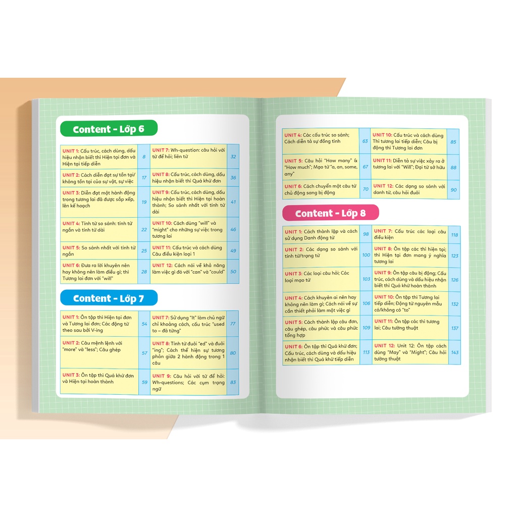 chủ đề tương ứng với chương trình học tiếng Anh của lớp 6, lớp 7, lớp 8, lớp 9 Cuốn sách giới thiệu các cấu trúc ngữ pháp tiếng Anh một cách ngắn gọn, trọng tâm, có kèm ví