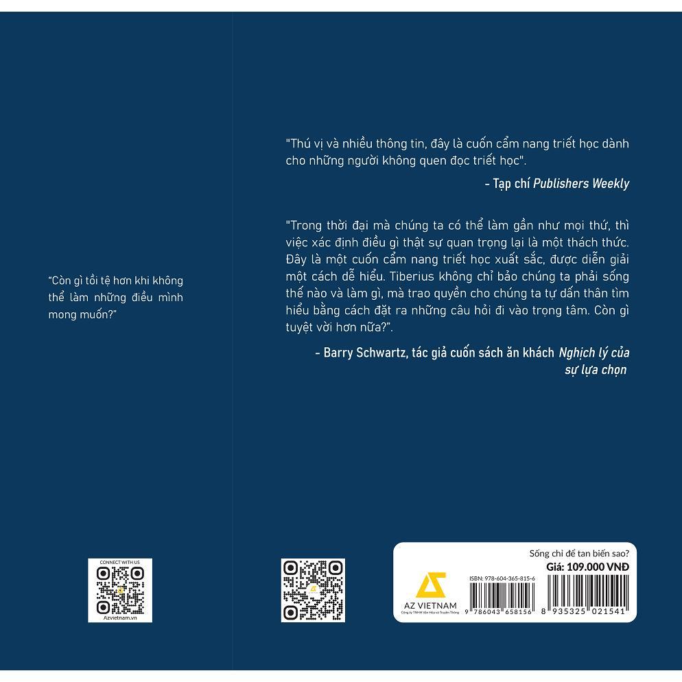 Khác với những cuốn sách Triết khó nhằn, Sống chỉ để tan biến sao? lại là một cuốn sách Triết được diễn giải hết sức dễ hiểu, kết hợp trải nghiệm riêng với những dẫn giải triết học song song với tâm lý học. Valerie Tiberius sẽ mang đến cho người đọc một lối tư duy đầy sâu sắc về những điều quan trọng trong cuộc sống. Để rồi thông qua đó, hướng dẫn chúng ta cách để đương đầu với những mâu thuẫn giữa các mục tiêu hay những bất đồng thường xảy ra trong cuộc sống.