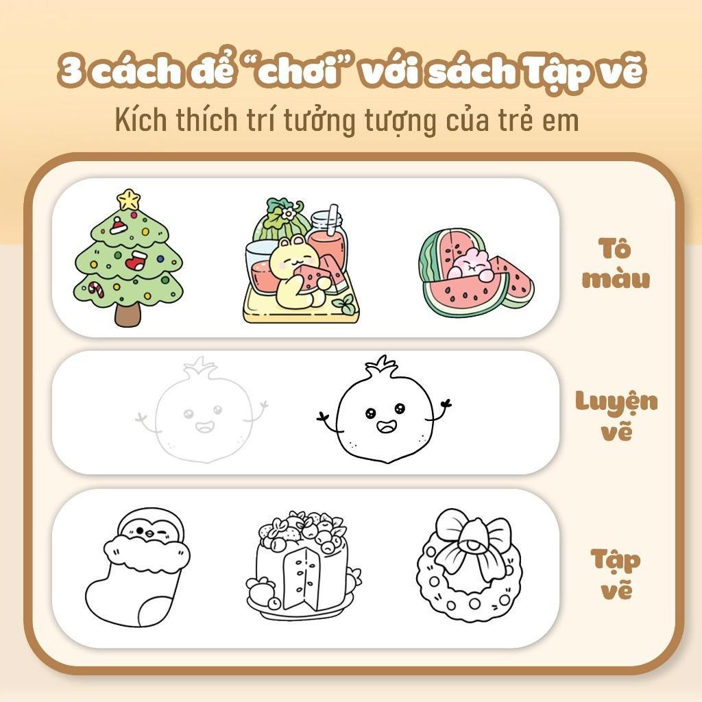 "Tập vẽ theo nét" là bộ sách thú vị gồm 5 cuốn tập vẽ với các chủ đề hấp dẫn: Lễ hội vui vẻ, Khu vườn rau củ, Vật nuôi đáng yêu, Khu vườn ẩm thực, và Thế giới đại dương. Mỗi cuốn sách mở ra một thế giới sắc màu rực rỡ với các hình vẽ sinh động, giúp trẻ phát triển khả năng quan sát và tư duy sáng tạo, đồng thời giúp khơi dậy niềm đam mê, khả năng hội họa của các bé. Các hình vẽ đơn giản, dễ thương, dễ thực hiện, giúp trẻ rèn luyện kỹ năng cầm bút, quan sát chi tiết và thể hiện sự sáng tạo theo cách riêng của mình.