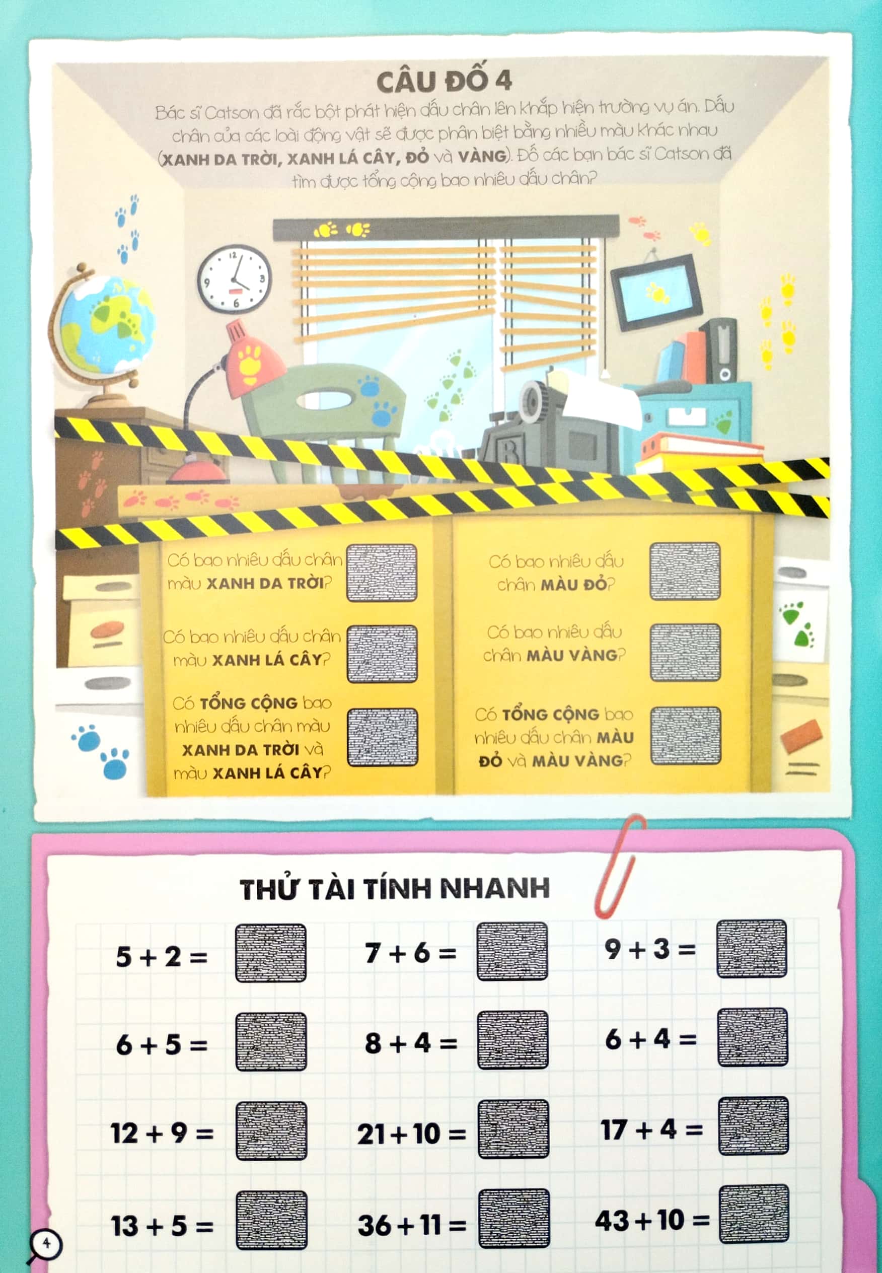 Thám tử Sherlock Bones và Bác sĩ Catson đang truy bắt tên tội phạm là Giáo sư Moriratty. Manh mối được ẩn giấu trong các bài toán nhân, cộng và trừ. Bạn hãy dùng tài tính toán của mình để giúp chàng thám tử lần theo dấu vết của tên tội phạm gian xảo bằng cách giải các câu đố trong sách nhé! Đừng lo nếu gặp phải các câu hỏi hóc búa, vì chúng tớ đã có các mẹo hay và chiếc Kính lúp thám tử để giúp bạn tìm ra đáp án.