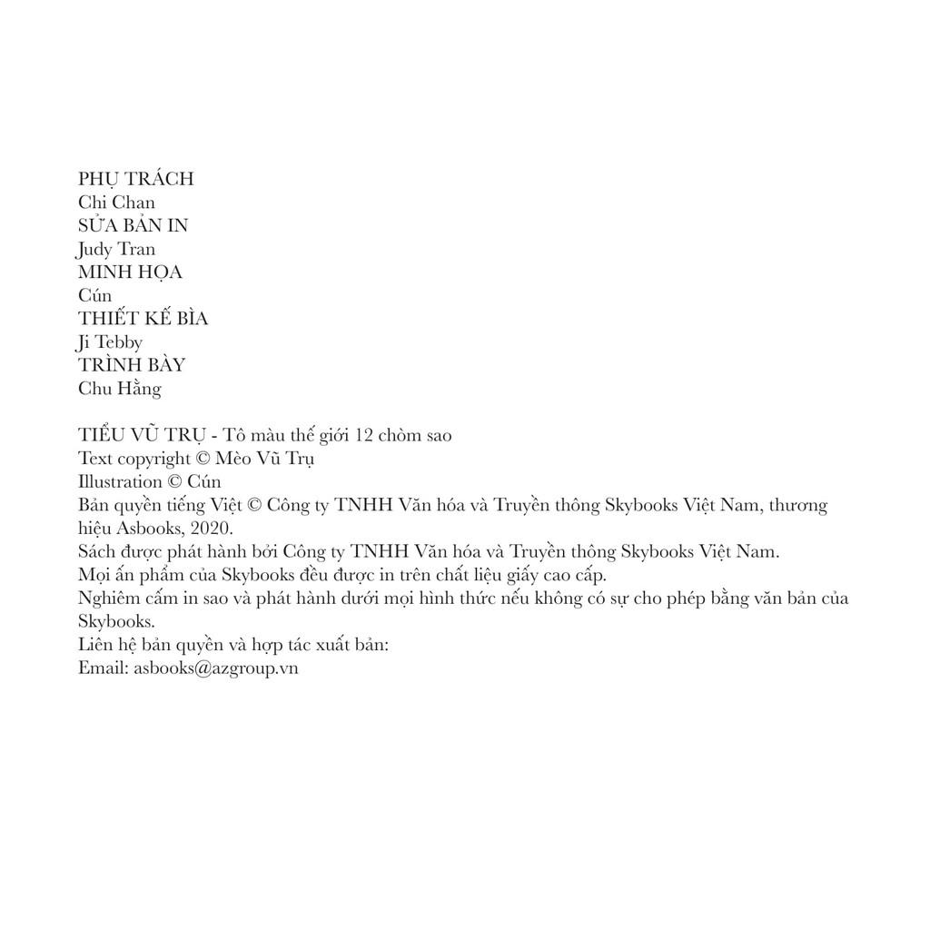 TIỂU VŨ TRỤ - tô màu thế giới 12 chòm sao tái hiện lại hành trình kỳ diệu của 12 cung hoàng đạo: trái tim – tình yêu đến – chia tay và tan vỡ - đừng dậy sau cơn mưa với cách trình bày ngắn gọn, nội dung ý nghĩa và những hình vẽ sinh động, dễ thương. Sách được in bằng chất liệu giấy cao cấp, phù hợp với nhiều loại màu khác nhau.