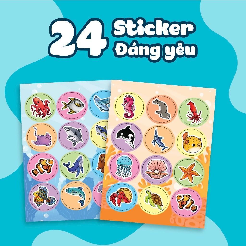 Bộ sách "Tô màu khám phá" gồm 5 cuốn: "Hồ nước trong xanh," "Nông trại vui vẻ," "Thành phố nhộn nhịp," "Thủy cung bí ẩn," và "Vườn thú ngộ nghĩnh. Sách phù hợp với trẻ lứa tuổi từ 3 đến 6 tuổi. Với những cuốn sách này các bé không chỉ thỏa sức tô màu mà còn giúp các em học hỏi và khám phá thế giới muôn màu sắc. Được thiết kế với màu sắc sinh động, sách kích thích sự sáng tạo của trẻ, đồng thời đi kèm với sticker động vật, giúp các em hình dung rõ nét về các loài vật. Hơn nữa, sách còn cung cấp tên gọi bằng tiếng Việt và tiếng Anh cho từng con vật theo chủ đề, giúp trẻ mở rộng hiểu biết về thế giới và học thêm một ngôn ngữ mới - tiếng Anh.