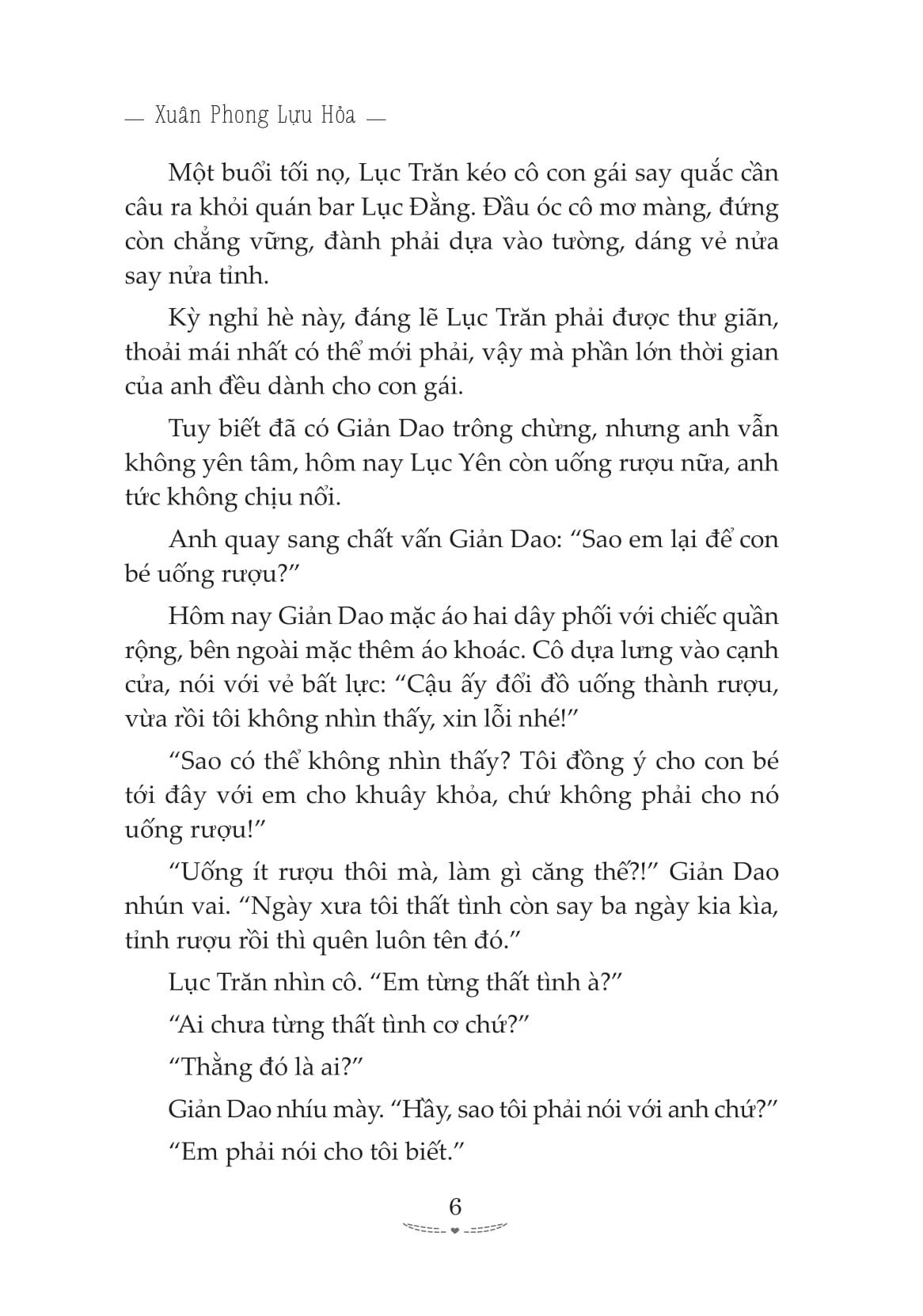 Cô gái lặng lẽ ngồi cạnh anh, anh dịu dàng nhìn cô. Cô vẫn như vậy, chẳng hề thay đổi, vẫn là Lục Yên trong trí nhớ của anh, còn anh đã không còn là thiếu niên năm nào nữa. Nhưng dù đôi mắt anh đã nhìn thấy bao nhiêu thăng trầm của cuộc đời, dù trái tim anh đã lạnh lẽo, cô độc như thế nào, thì lúc này đây, nhìn thấy cô… trong lòng anh lại chất chứa sự dịu dàng.
