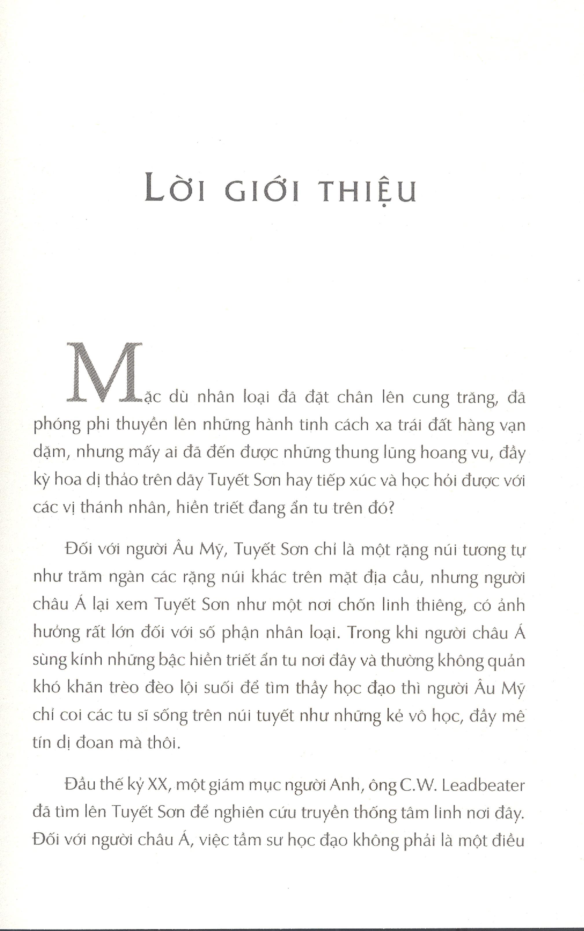 Trở về từ xứ tuyết sẽ tiếp nối cho cuộc hành trình đi đến Tuyết Sơn và từ Tuyết Sơn trở về. Đối với nơi đây, nhiều người cho rằng đó là nơi linh thiêng nhưng một số nguời lại cho rằng nơi đây lại là nơi hoang đường và không có thật. Nhưng cho dù thế nào đi nữa, thì các bậc hiền triết trên Tuyết Sơn đã minh chứng được điều đó và đã củng cố niềm tin tôn giáo một cách vững chắc hơn về những điều mà trước đó, tuy được học hỏi qua truyền thống phương Tây, nhưng không thực sự chứng nghiệm được.