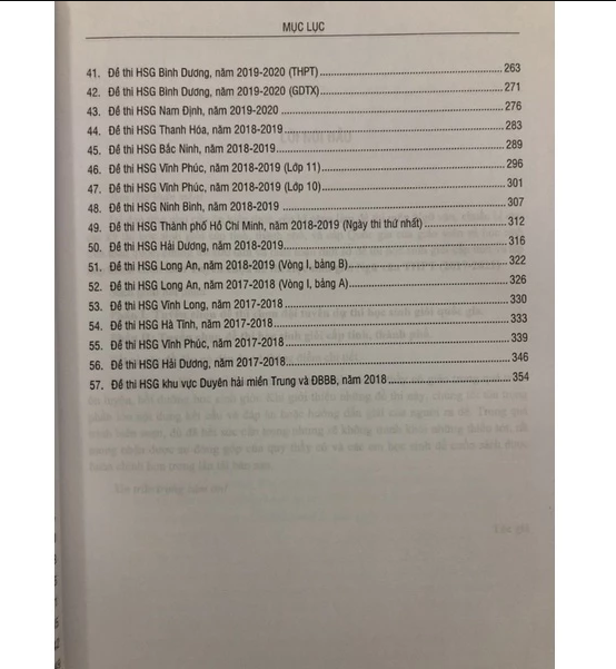 Nội dung gồm có: Phần I: Tuyển chọn đề thi chọn đội dự tuyển thi học sinh giỏi quốc gia Phần II: Tuyển chọn đề thi chọn học sinh giỏi cấp tỉnh, thành phố Tất cả các đề đều có đáp án và thang điểm chi tiết Đây sẽ là tài liệu hữu ích cho các em học sinh và các thầy cố giáo trong quá trình ôn luyện, bồi dưỡng học sinh giỏi. Chi tiết sản phẩm Tác giả: Kim Hà Sô trang: 359 Xuất bản: 2022 Nhà xuất bản: Đại học quốc gia Hà Nội Công ty phát hành: NXB Đại Học Quốc Gia Hà Nội