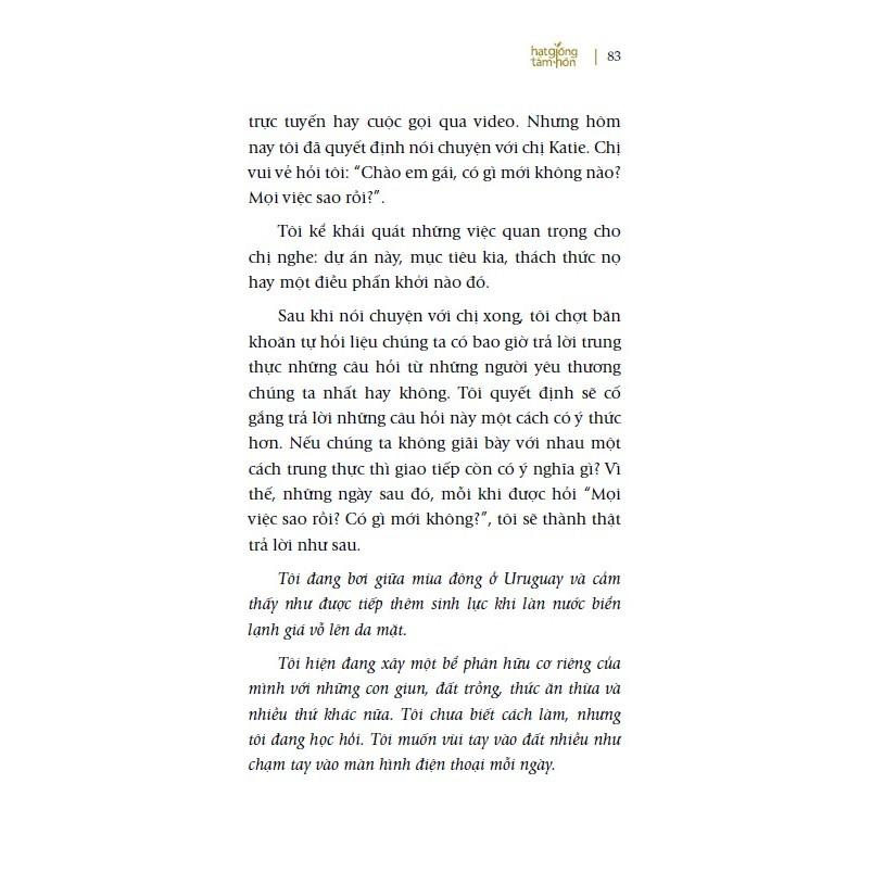 Sách cũng kể về những nỗi niềm trăn trở của người trẻ về khủng hoảng bản sắc cá nhân giữa một thế giới đề cao nhiều thành tựu hào nhoáng bên ngoài. Nhưng sau cùng, họ cũng hiểu ra rằng chỉ cần “chính mình là đủ”, rằng mọi thứ “vốn đã đủ đầy” và ta cần đối diện mọi thứ bằng lòng trân trọng và sự biết ơn.