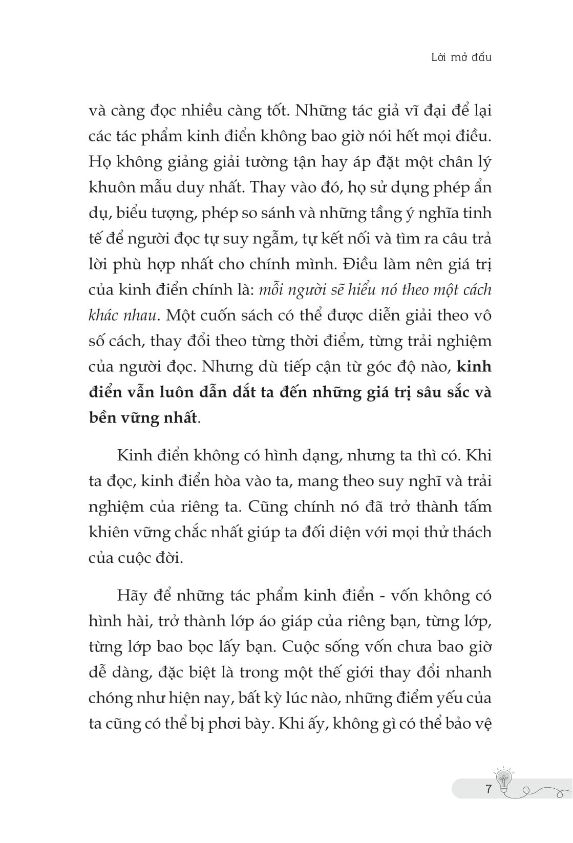 tác giả viết cuốn sách này với mong muốn chia sẻ giá trị của những tác phẩm kinh điển đến với độc giả. nhưng cuối cùng, chính tác giả lại là người nhận được nhiều nhất từ những giá trị ấy.