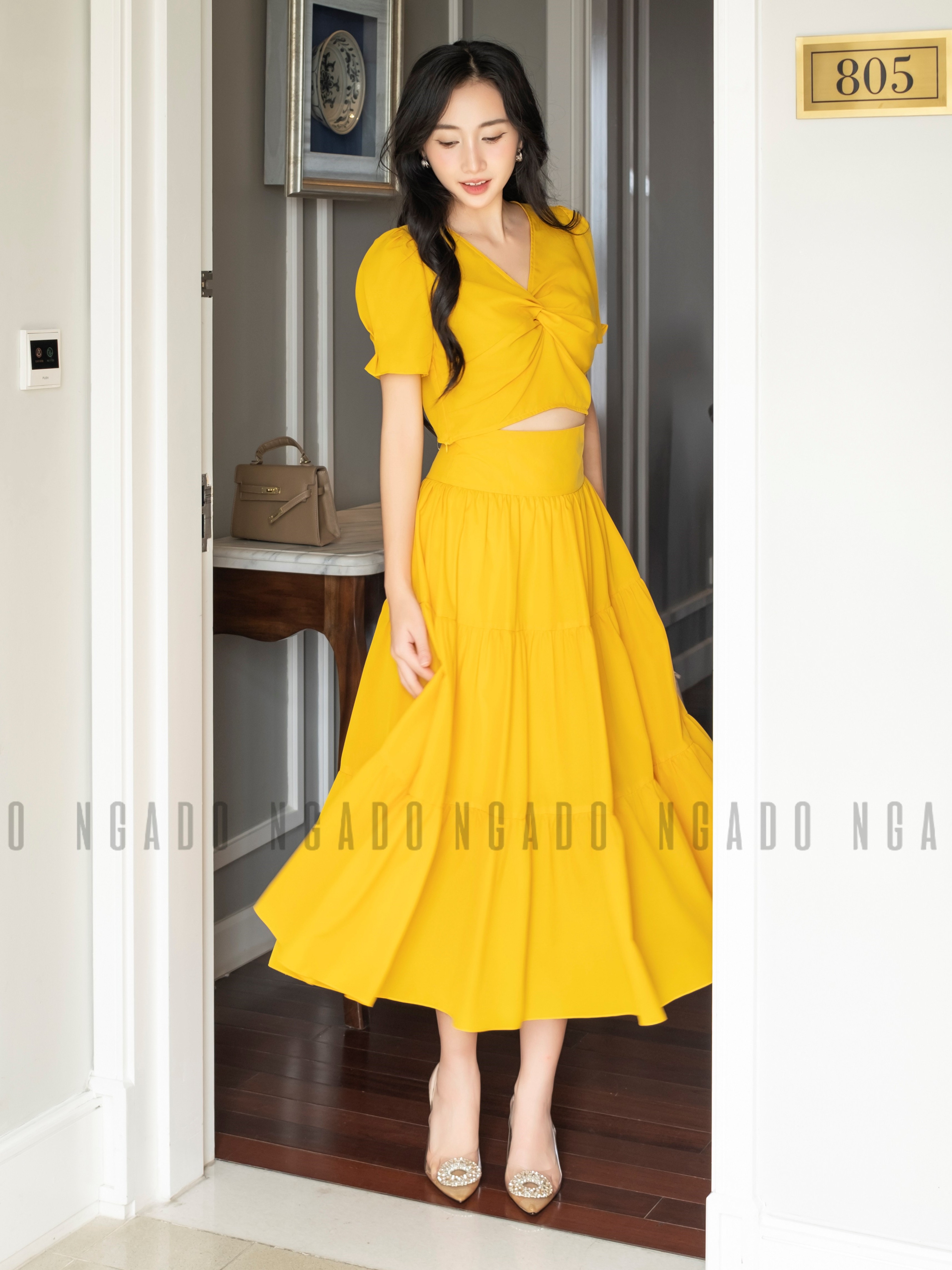 ✨Set áo váy vàng NGADO , set đồ nữ , Set áo kèm chân váy xòe , Set đồ nữ thiết kế