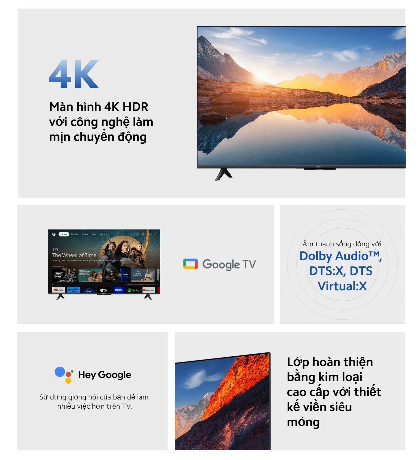 LƯU Ý: Sau khi nhận được hàng, khui hàng bạn nhớ QUAY LẠI VIDEO UNBOX SẢN PHẨM 6 mặt của gói hàng và xuyên suốt quá trình mình khui ra cho đến khi sản phẩm không có vấn đề giúp shop nha. để đảm bảo quyền lợi của khách hàng khi nhận sản phẩm, shop sẽ dựa trên video khui hàng mà mình cung cấp để giải quyết các vấn đề phát sinh phía sau ạ Vì sản phẩm là hàng kích thước lớn nên sẽ không tránh được rủi ro khi vận chuyển. VD: sản phẩm bị bể, vỡ trong quá trình vận chuyển thì shop còn có video unbox để làm việc với vận chuyển và đổi mới sản phẩm cho mọi người ạ Tivi Xiaomi A43 FUD 2025 tinh tế, hiện đại với thiết kế không viền trải nghiệm hình ảnh không giới hạn, khung kim loại chắc chắn, bền đẹp theo thời gian. Trang bị màn hình 4K FUD 43 inch sắc nét, dải màu rộng kết hợp độ phân giải 3840 × 2160, góc nhìn 178°(H)/178°(V) mang đến hình ảnh chân thực. Công nghệ âm thanh Dolby Audio, DTS-X và DTS Virtual:X tạo nên âm thanh sống động, Google TV cung cấp kho giải trí khổng lồ. Điều khiển bằng giọng nói thông minh, Xiaomi A43 FUD 2025 hứa hẹn nâng tầm trải nghiệm cuộc sống, tận hưởng trọn vẹn bên gia đình.