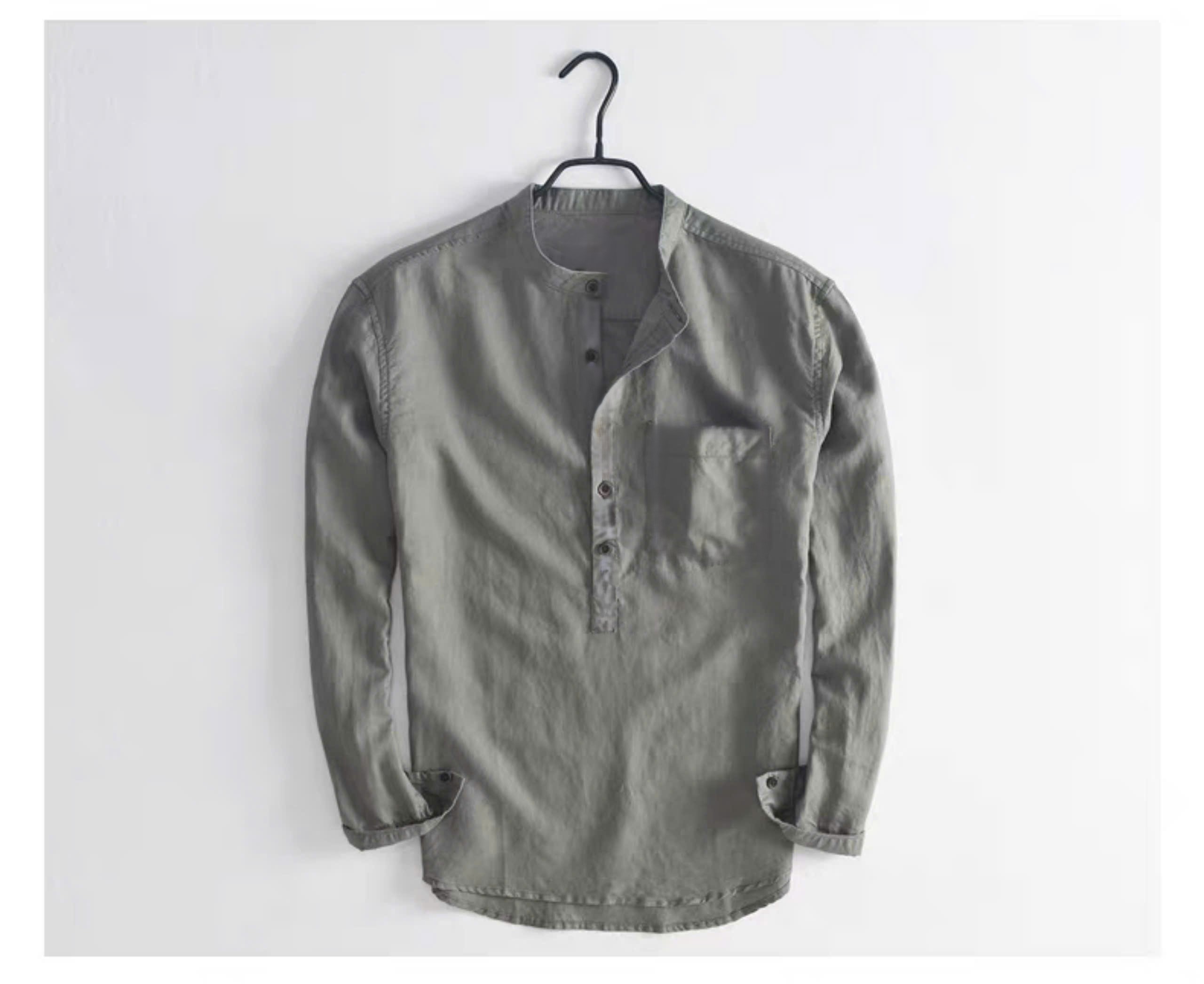 Áo sơ mi nam form rộng cổ tàu cổ trụ tay dài Giấu Nút phong cách hàn quốc trẻ trung lịch lãm-MRDT02 - ÁO SƠ MI NAM RỘNG TAY DÀI mặc rộng thoải mát, mát
