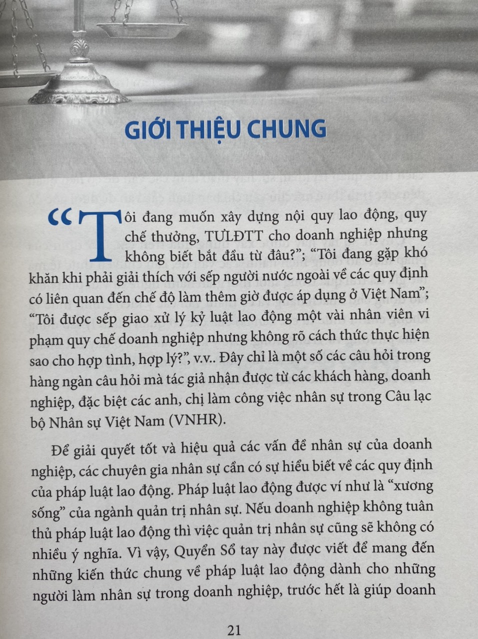Mong rằng cuốn Sổ Tay Pháp Luật Lao Động này sẽ hữu ích nhiều cho công việc hàng ngày của bạn đọc nói chung và các anh, chị làm công tác nhân sự trong doanh nghiệp nói riêng.