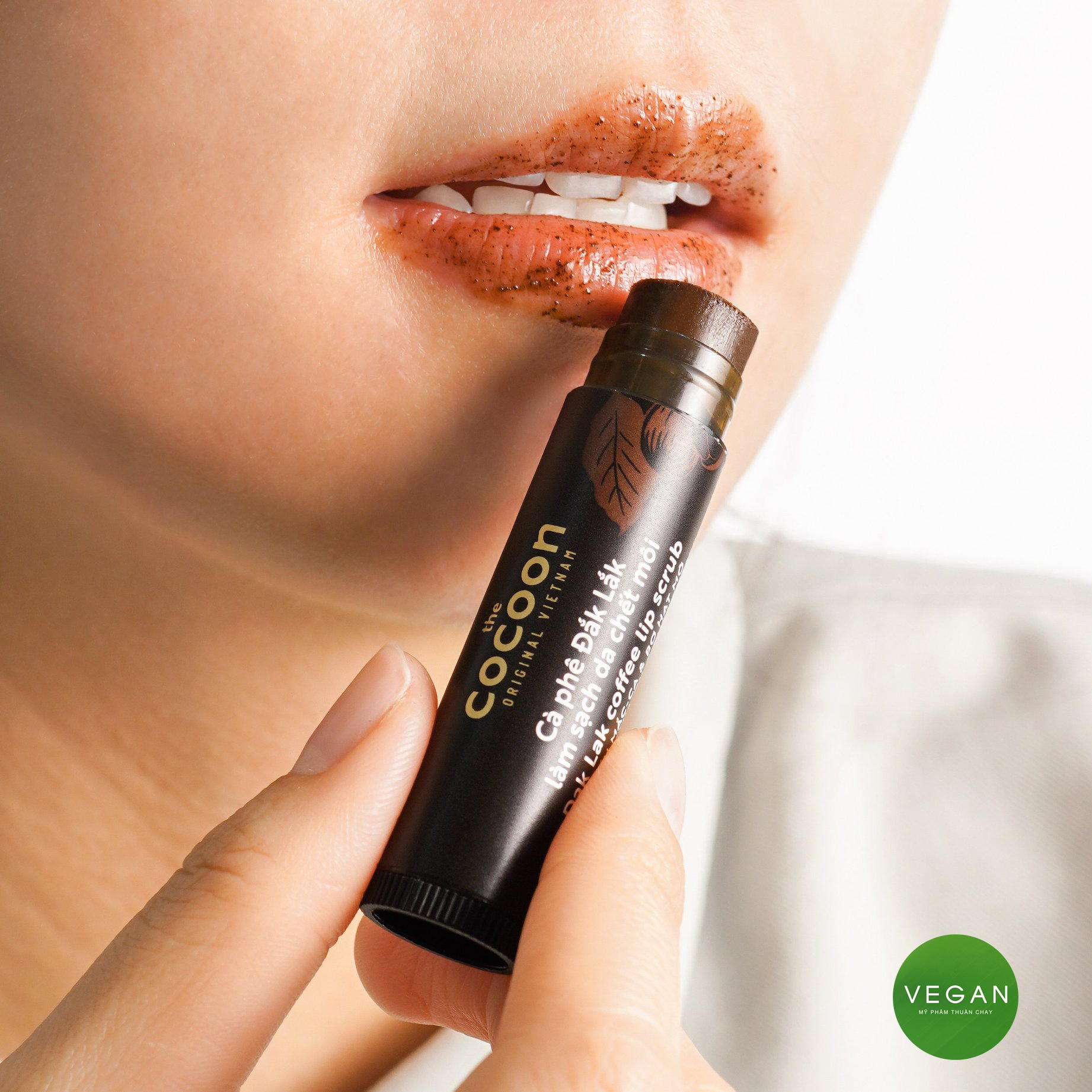 - Mang lại làn môi ẩm mềm và mịn màng Thành phần chính Cà phê đắk lắk làm sạch da chết môi cocoon