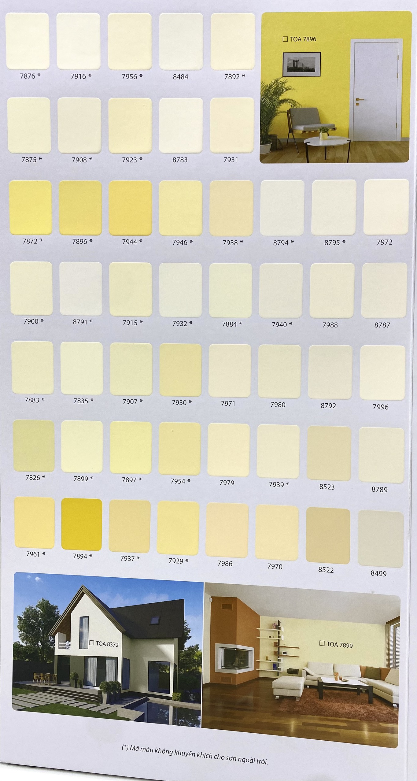 Sơn nước Toa thoải mái lau chùi nội thất màu vàng 7923 _5L Sơn nước nội thất cao cấp TOA Thoải Mái Lau Chùi Bóng Mờ được sản xuất từ nhựa nhũ tương acrylic, có thể