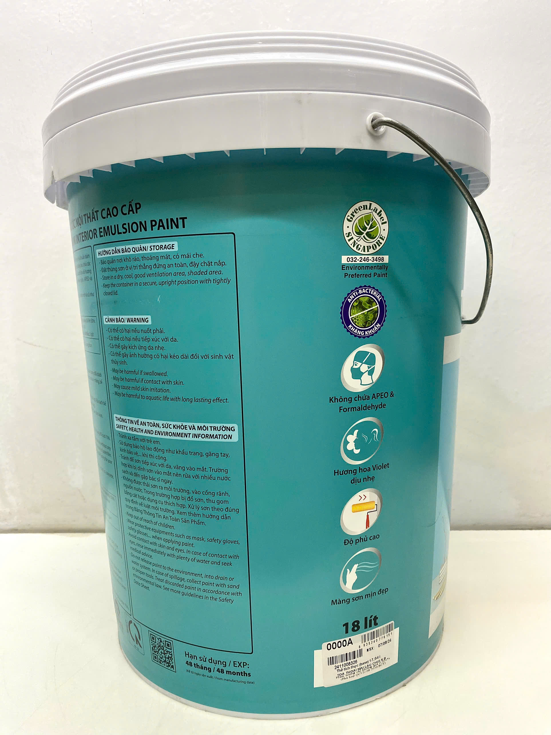 Sơn nước nội thất cao cấp Toa Nanoclean màu xanh ngọc 7508_ 5L - Được chế tạo từ nhựa acrylic nguyên chất với công nghệ tiên tiến nano giúp nhà bạn luôn an toàn, sạch sẽ
