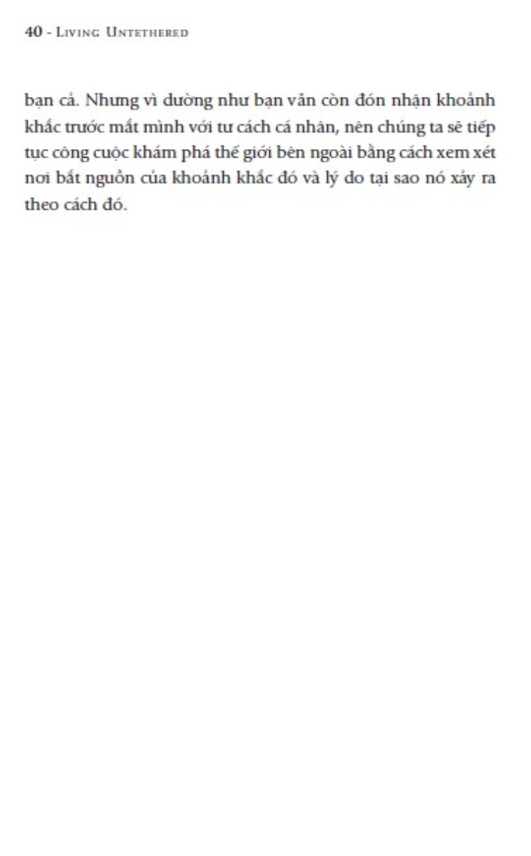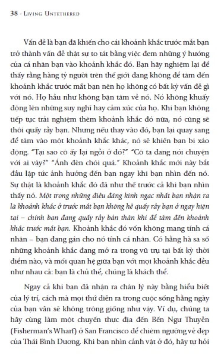 Bằng cách hướng dẫn bạn quan sát và thấy ra Bản ngã sáng suốt – bản thể chân thật của mình, thấy ra nguyên lý vận hành của tâm trí, trái tim và năng lượng nội tại trước những sự kiện xảy ra ở thế giới bên ngoài, Michael Singer chỉ dẫn bạn làm thế nào để giải phóng mọi mô thức tích tụ bên trong để trở về trạng thái tự do tuyệt vời vốn có của nội tâm và tận hưởng từng khoảnh khắc của đời sống diễn ra trước mắt bạn.