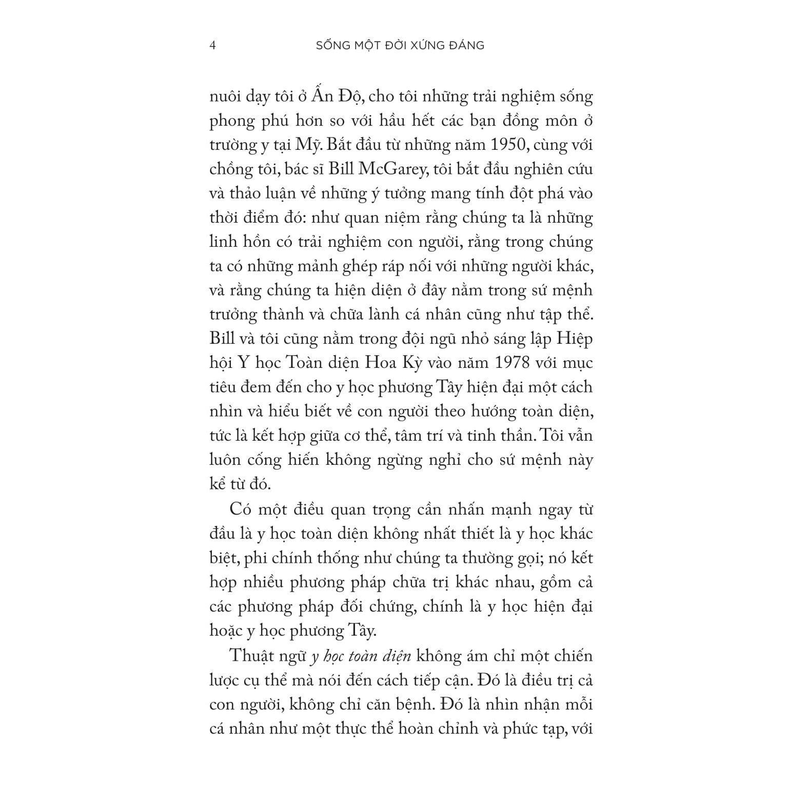 Đúc kết từ hơn một thế kỷ sống và cống hiến cho y học, “Sống một đời xứng đáng” là sáu bí quyết đơn giản của vị bác sĩ 102 tuổi Gladys McGarey, giúp bạn đọc khơi dậy nguồn năng lượng sống, nắm rõ quy luật vận hành của sức khỏe và an vui, để tự chữa lành thể chất và tinh thần bằng tình yêu thương luôn hiện hữu quanh mình.