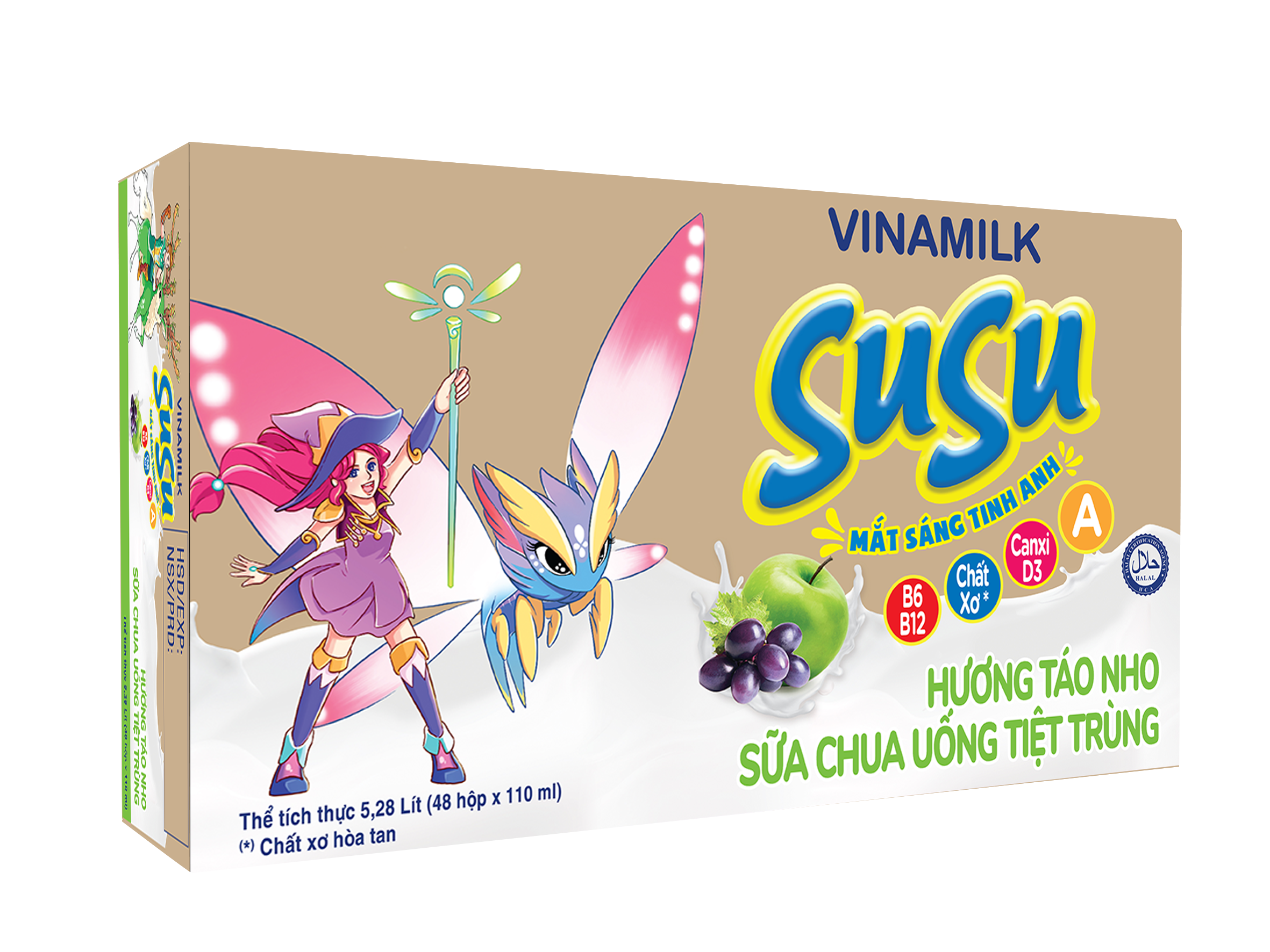 - Sữa chua uống Vinamilk SuSu mới – công thức đột phá Vitamin A giúp bé mắt sáng tinh anh, ngoài ra còn có Vitamin B6, B12 và chất xơ hòa tan giúp bé khỏe mạnh và năng động mỗi ngày.