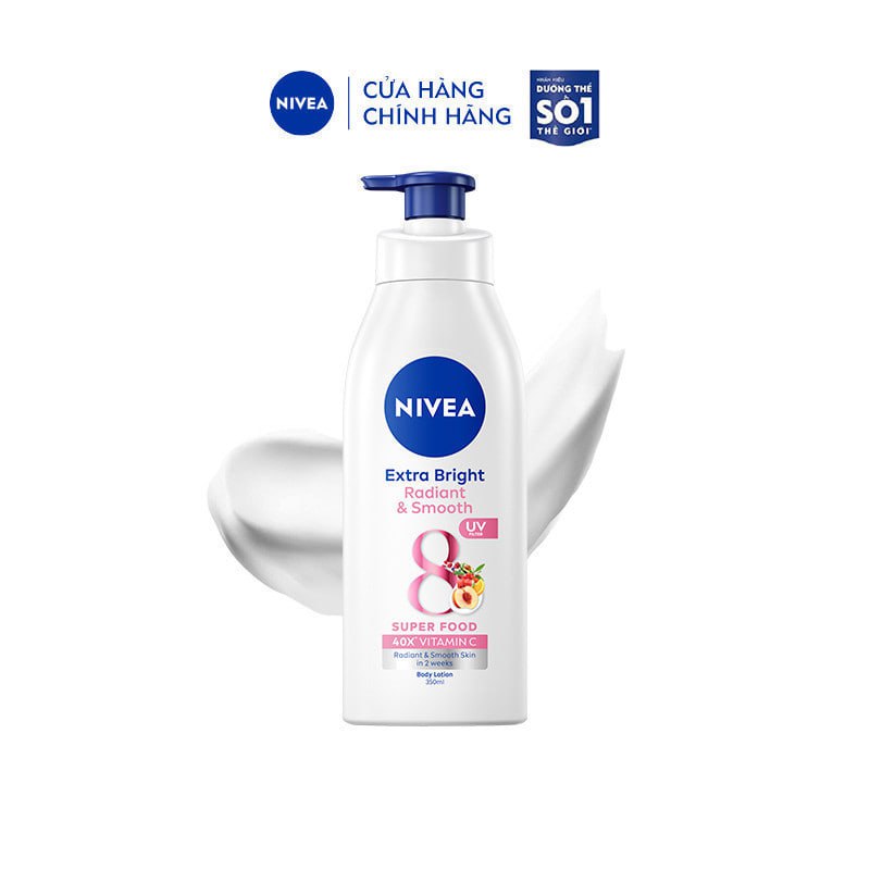 Sữa Dưỡng Thể NIVEA Extra Bright Dưỡng Sáng Da | Mịn Da (350 ml) CÔNG DỤNG - Dưỡng da sáng mịn từ bên trong, màng lọc tia UV giúp bảo vệ da khỏi tác hại