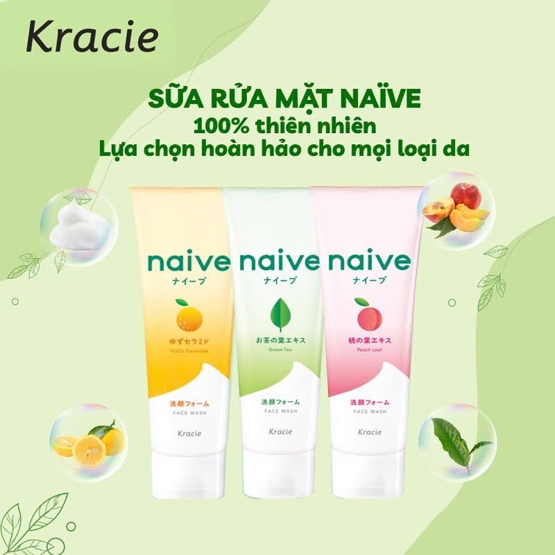 ✨Sữa Rửa Mặt Sạch Sâu Chiết Xuất Quả Thanh Yên Và Ceramide Kracie Naive Face Wash (Yuzu Ceramide) - Tuýp 130G
