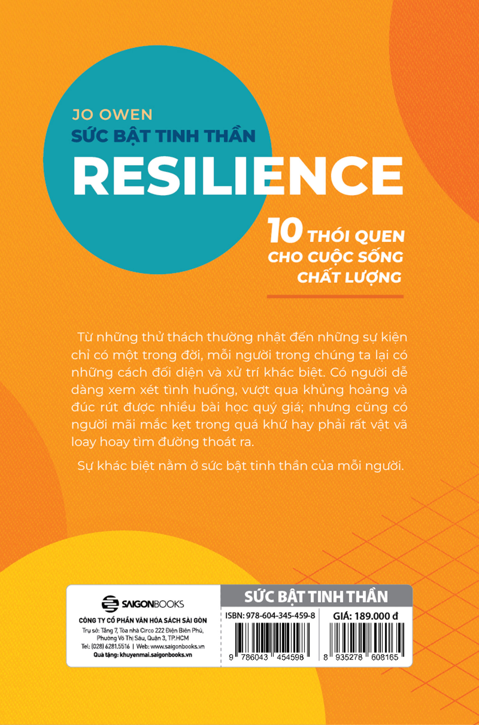 SỨC BẬT TINH THẦN - 10 Thói Quen Cho Cuộc Sống Chất Lượng - Jo Owen (bìa mềm) - Giá bìa: 189.000đ Sức Bật Tinh Thần - 10 Thói Quen Cho Cuộc Sống Chất Lượng Sống vui, làm tốt: Sức mạnh của Sức bật tinh thần Hằng ngày, chúng ta phải đối mặt với những phiền toái nhỏ như giao thông tắc nghẽn hay dòng người nối đuôi nhau xếp hàng. Tuy nhiên, trong cùng một tình huống, một số người sẽ có thể phản ứng khôn khéo hơn số khác, bởi vì không ai giống ai. Bạn có lẽ cũng sẽ phản ứng lúc vầy lúc khác vào những thời điểm khác nhau, dù là về cùng một chuyện khiến bạn khó chịu. Có những ngày bạn ghét xếp hàng nhưng lại có ngày bạn chẳng thấy phiền gì, vì khi đó bạn có thể giết thời gian bằng việc dùng điện thoại. Điều quan trọng ở đây là, bạn luôn có thể lựa chọn cách mình phản ứng. Bạn không phải là nạn nhân của hoàn cảnh mà trong đó những việc xảy ra luôn dẫn đến một phản ứng nhất định. Điều này không chỉ đúng với những sự kiện nhỏ mà cũng đúng với những sự kiện trọng đại, cả trong đời sống lẫn sự nghiệp của bạn. Bạn sẽ được lợi khi biết chọn cách phản ứng phù hợp với hoàn cảnh. Bản chất của sức bật tinh thần là biết cách đưa ra những lựa chọn đúng đắn trong đời sống. Xây dựng thói quen tư duy mới Sức bật tinh thần (ý chí kiên cường và khả năng phục hồi) không phải là một kỹ năng độc lập giống như kỹ năng chơi đàn dương cầm. Nó bao gồm một loạt các thói quen tư duy mà ta hoàn toàn có thể học được. Ai cũng sở hữu vô số thói quen tư duy, và việc phát triển những thói quen này, theo đúng nghĩa đen, là quá trình kéo dài cả đời. Nghiên cứu chỉ ra rằng, có mười loại thói quen tư duy đóng vai trò chủ chốt trong việc rèn luyện sự kiên gan bền chí. Điều kỳ diệu của đức tính này là bạn không cần phải thực hiện cả mười thói quen để có thể sống vui và làm việc hiệu quả. Chỉ cần tập trung hình thành một thói quen cũng đủ để tạo ra sự khác biệt đáng kể rồi. “Sức bật tinh thần” sẽ trình bày 45 kỹ năng và hành động thiết thực giúp bạn có được phẩm chất này một cách dễ dàng và hiệu quả. Và mặc dù được viết dựa trên cơ sở là các nghiên cứu, chúng tôi cũng hướng đến tính thực tiễn cao để bạn có thể chọn cho mình hướng đi riêng. Cuốn sách này mang đến cho người đọc những hiểu biết thực tế và được chia nhỏ thành những nội dung dễ tiếp thu, từ đó giúp chúng ta đối mặt với thách thức trong cuộc sống bằng tinh thần tỉnh táo, khách quan va có chủ ý mà không làm cạn kiệt năng lượng thể chất và tinh thần của ta.