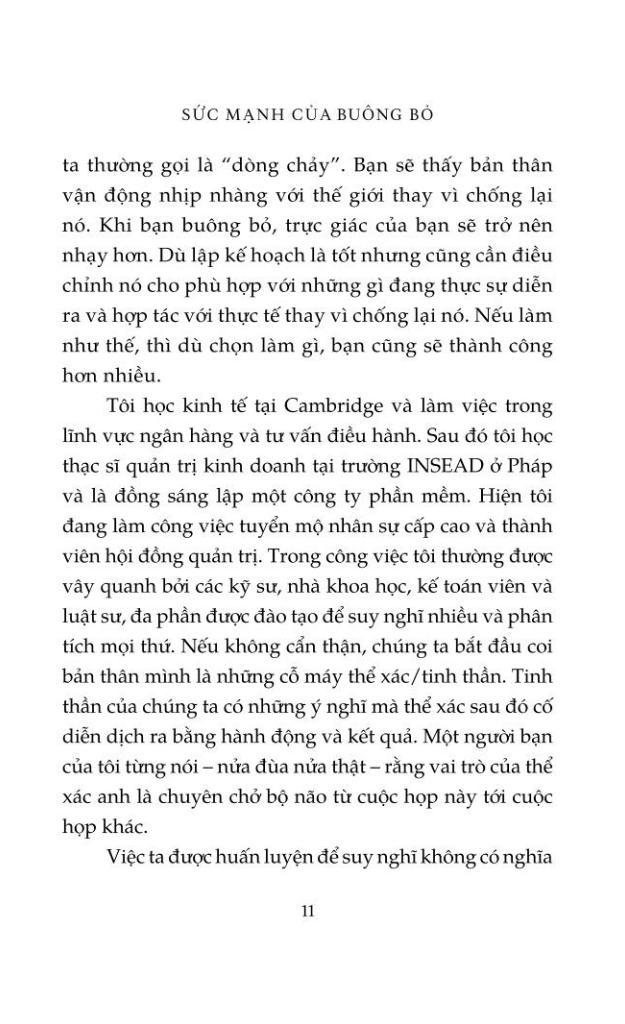 Trên hành trình phát triển bản thân, hẳn sẽ có lúc ai cũng phải đứng trước một lựa chọn: níu giữ hay buông bỏ? Níu giữ hiển nhiên khó khăn, nhưng buông bỏ… liệu có dễ dàng? Buông, tiếng ấy nghe thật nhẹ, nhưng đằng sau đó là vô vàn tầng lớp, là biết bao trở ngại đã chồng chất lên trong suốt cuộc đời: những kỳ vọng, những sợ hãi, những thiếu niềm tin, những suy nghĩ cố hữu, những tổn thương xưa cũ,… Bất chấp tất thảy những điều ấy, việc từ bỏ và nương theo dòng chảy, thuận theo trực giác, tận hưởng bất kỳ điều gì sắp xảy đến, vẫn thật mời gọi, như nhen lên tia hy vọng về một cuộc đời thay đổi.