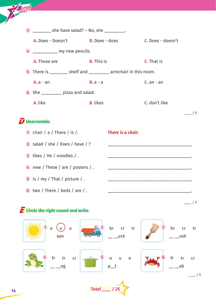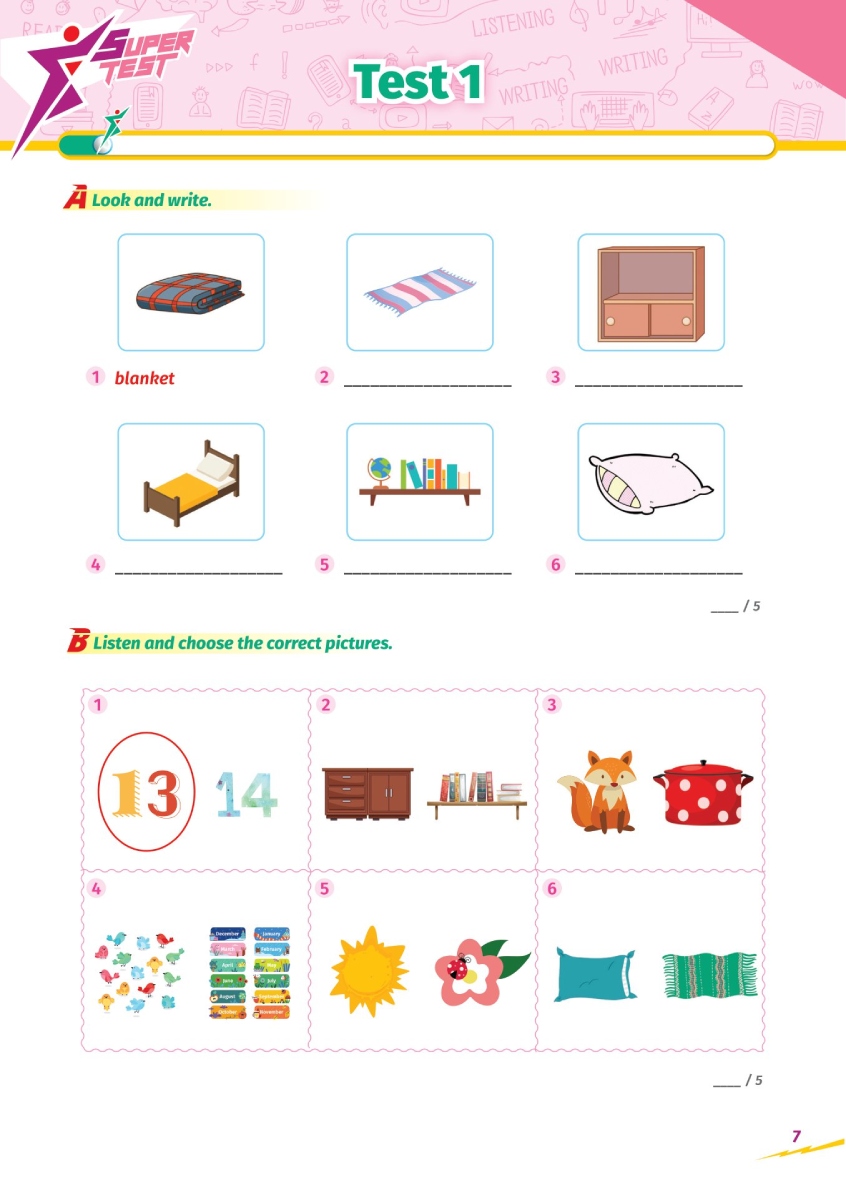 Với Bộ sách Super Test – Đề kiểm tra nhanh Tiếng Anh cho học sinh, bố mẹ sẽ giúp con tiến bộ từng ngày, tự tin với khả năng ngôn ngữ của mình khi ôn luyện Tiếng Anh bởi các bài tập về 4 kỹ năng: Nghe – Nói – Đọc – Viết được liên kết với nhau theo logic của bài học.