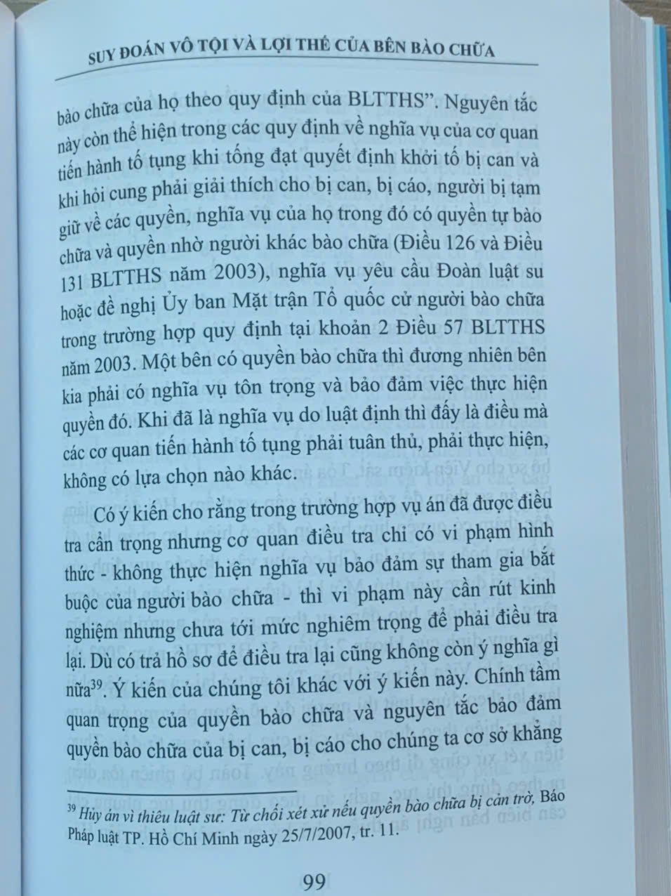 Cuốn sách Suy đoán vô tội và lợi thế của bên bào chữa của tác giả PGS.TS. Nguyễn Thái Phúc tập hợp 12 bài viết đã được đăng trên các tạp chí khoa học pháp lý và tham gia các hội thảo từ năm 2003 đến nay liên quan đến 3 nhóm vấn đề