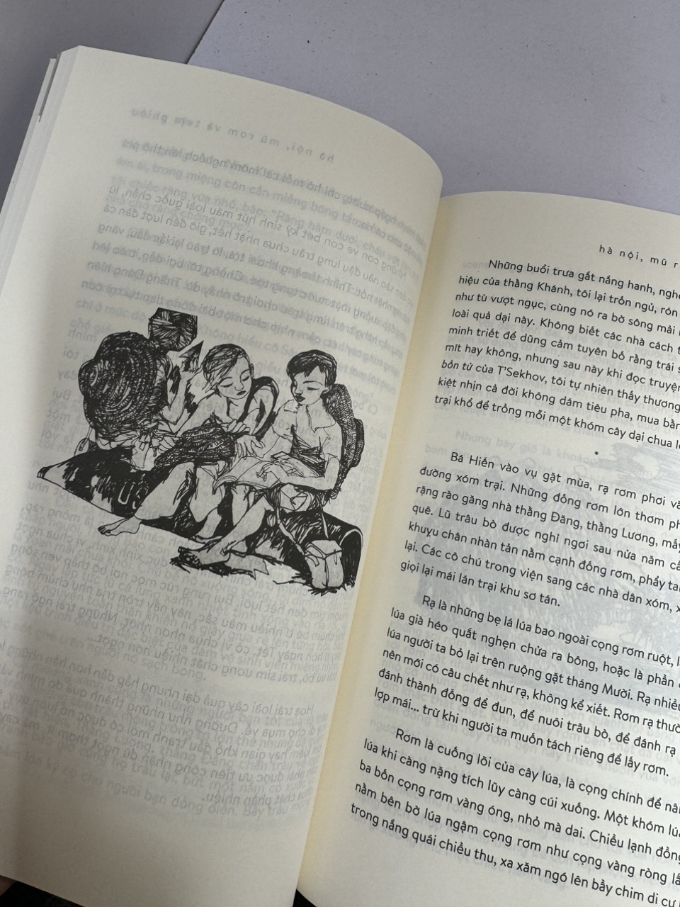 Bằng giọng kể hóm hỉnh, pha chút trào phúng, người viết đã vẽ lại cả một bối cảnh Hà Nội xưa cũ thân quen “Phía cuối hàng lổng chổng mấy nửa hòn gạch hay chiếc rá sứt cạp, xếp sẵn để đại diện cho một người mua hàng nào đó đang tranh thủ mua rau quầy bên cạnh. Thỉnh thoảng không thấy ai để ý, thằng bé con lại đá nửa viên gạch hay cái rá thủng mập mờ vô thừa nhận trước mặt mình bắn ra khỏi hàng, trong sự đồng tình của những người xếp phía sau lưng. Những kẻ chạy show quay về quầy cá, thấy mất “văn phòng đại diện” tức tối hằm hè, bất lực chửi đổng.”