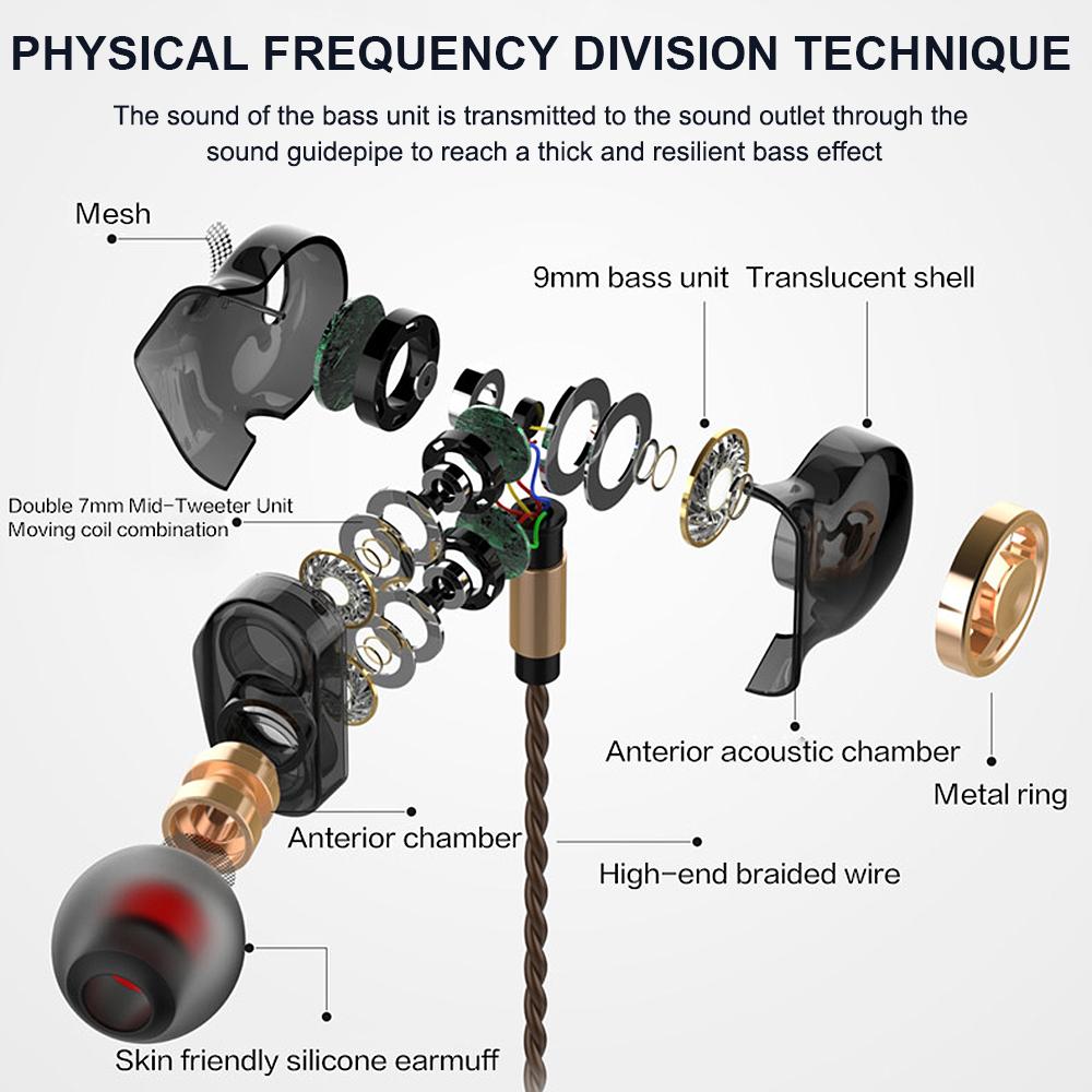 Features: *9mm bass unit and dual 7mm mid-tweeter unit moving coil combination make the middle and high frequency more natural and bass stronger. *Built-in Microphone enables hands-free calls. With one button in-line control, easy to