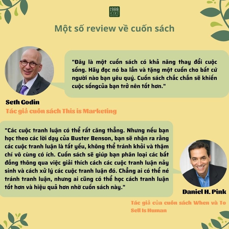 Là người đứng sau những nhóm có hiệu suất cao nhất tại các công ty lớn như Amazon, Twitter và Slack, Buster Benson đã dành ra 20 năm để tiến hành các thử nghiệm, trực tuyến và trực tiếp để xây dựng các học thuyết về những thói quen giao tiếp của chúng ta, đồng thời nghiên cứu về thiên kiến nhận thức, ngụy biện logic và phương pháp tư duy hệ thố Các nghiên cứu này đã thuyết phục ông rằng nghệ thuật tranh luận hiệu quả chính là kĩ năng cần làm chủ quan trọng nhất đối với bất kỳ ai. Tại sao chúng ta phải lo sợ những cuộc tranh luận? Sẽ thế nào nếu chúng ta có thể bình tĩnh nói chuyện và tạo ra những cuộc tranh luận mang lại sự thấu hiểu lớn hơn giữa các bên?