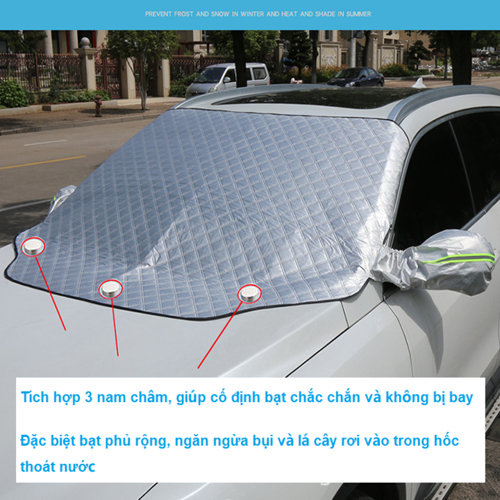 - Đặc biệt bạt phủ tích hợp 3 thanh nam châm, giữ cho bạt cố định không bị gió thổi bay. Đồng thời giữ sạch hốc để cần gạt mưa.