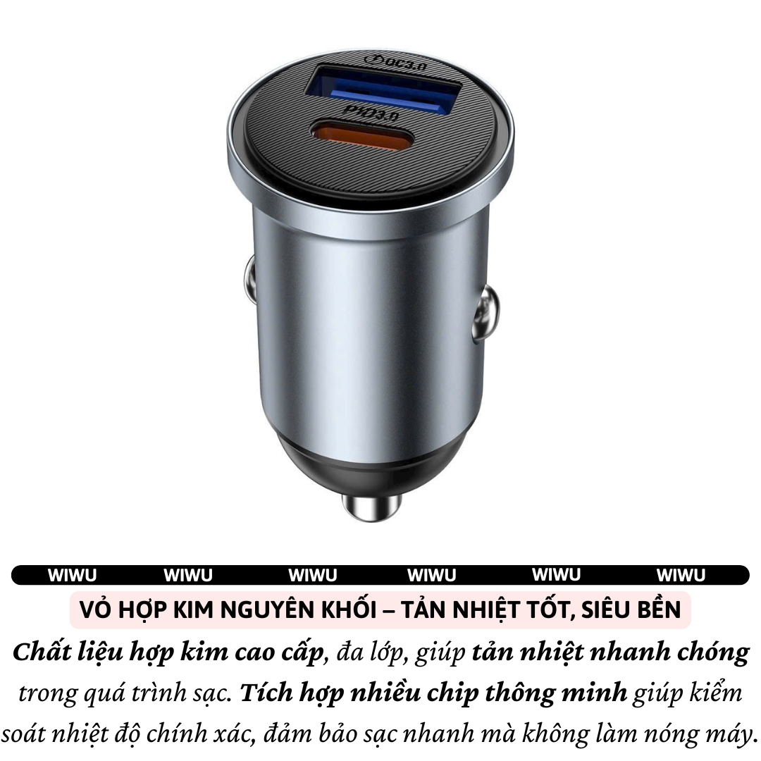 ✨Tẩu củ sạc nhanh 35W cho xe hơi ô tô PD3.0 Type- C + USB-A QC3.0 hiệu WIWU Nano Lite cho iphone 17 16 15 14 13 12 iPad Vivo Oppo samsung cho Macbook - hàng nhập khẩu