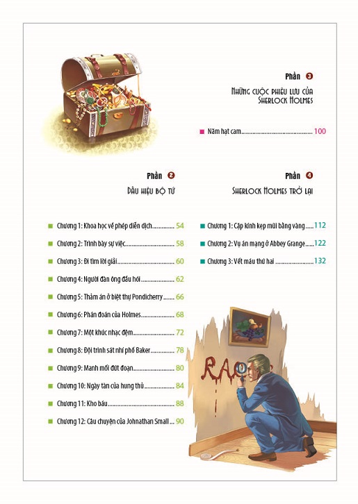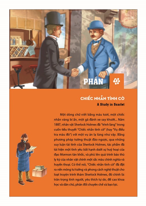 Sherlock Holmes – thám tử tư vĩ đại nhất trong văn học thế giới. Lạnh lùng, quyết đoán, dũng cảm, giàu lòng chính nghĩa, tài quan sát đáng kinh ngạc, khả năng suy luận tuyệt vời nhờ vào những chứng cứ khó ngờ nhất khám phá ra chân tướng ẩn giấu sau những sự thực bị bẻ cong hình thành một kinh điển bất hủ trong lĩnh vực văn học trinh thám.
