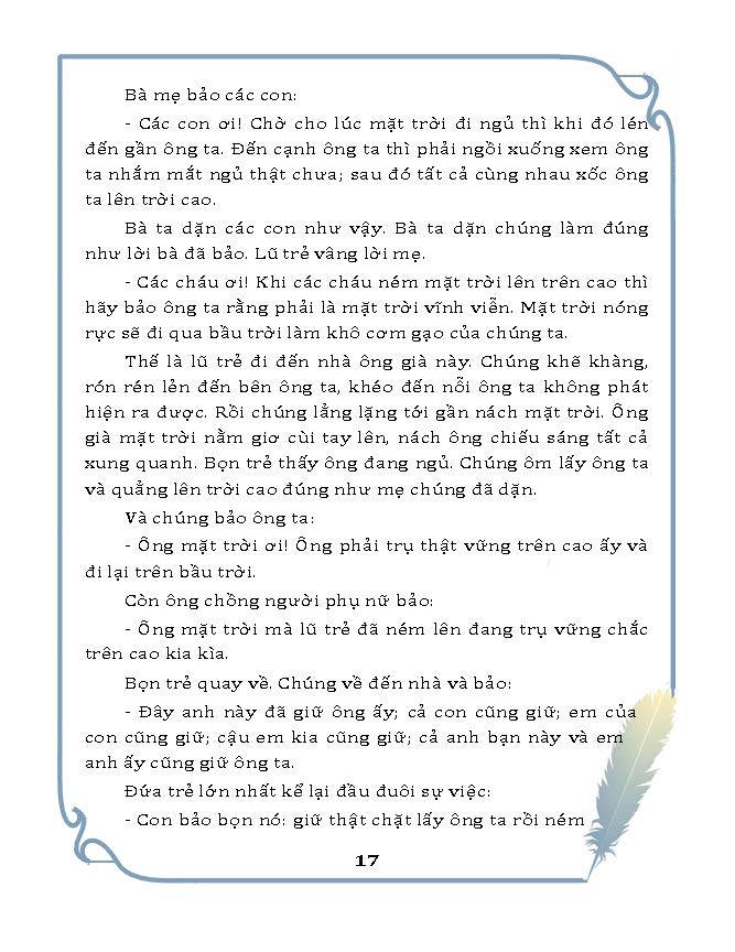 Giới thiệu sách Những câu chuyện dân gian giúp các em giàu thêm mơ ước, biết sống đẹp và trân trọng truyền thống cha ông. Tóm tắt nội dung Ngày nay, ta vẫn thường thấy