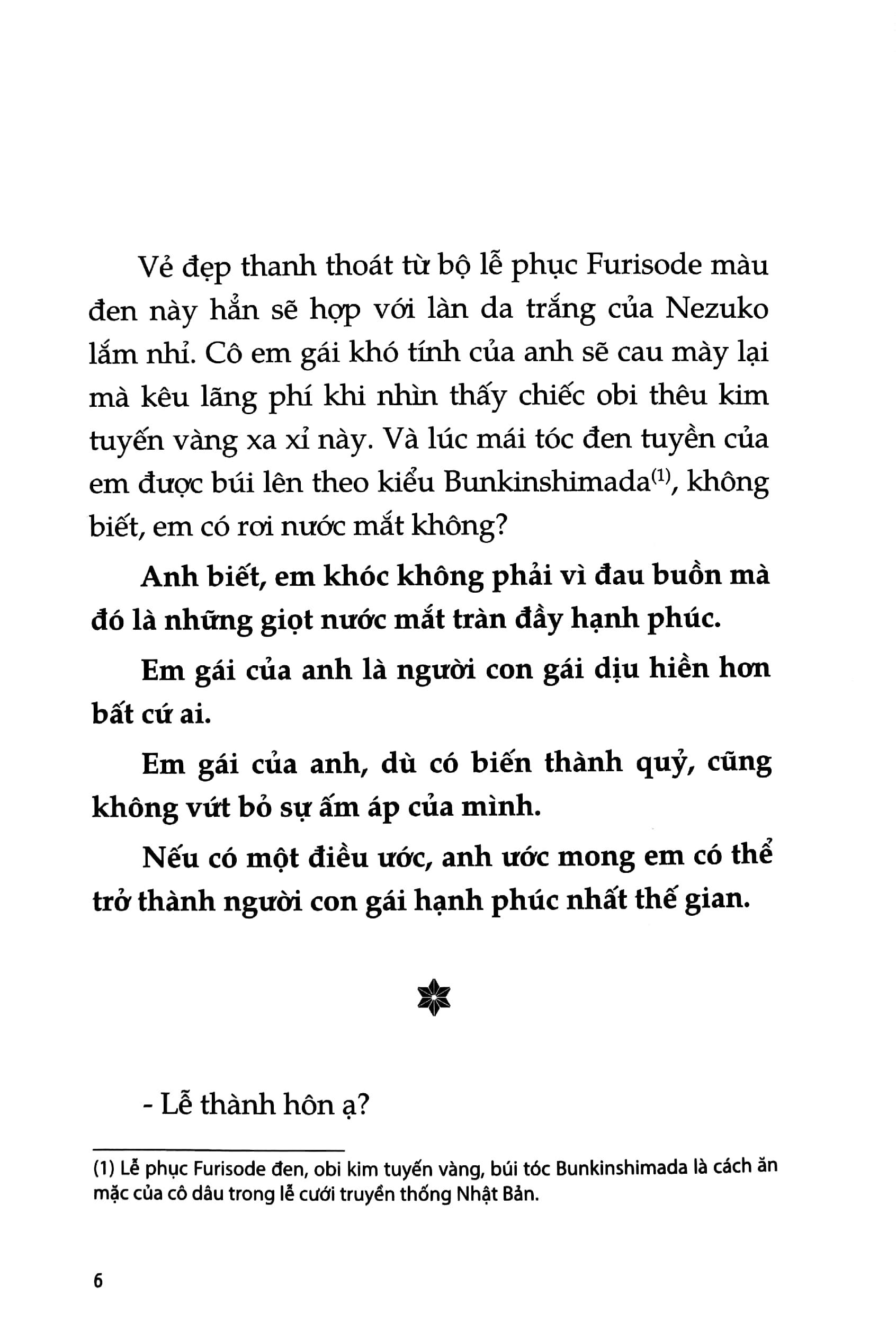 Trên đường thực thi nhiệm vụ, tiện đường ghé qua một ngôi làng, Tanjiro đã bắt gặp bóng hình hạnh phúc của một cô dâu trạc tuổi Nezuko trong đám cưới của mình.