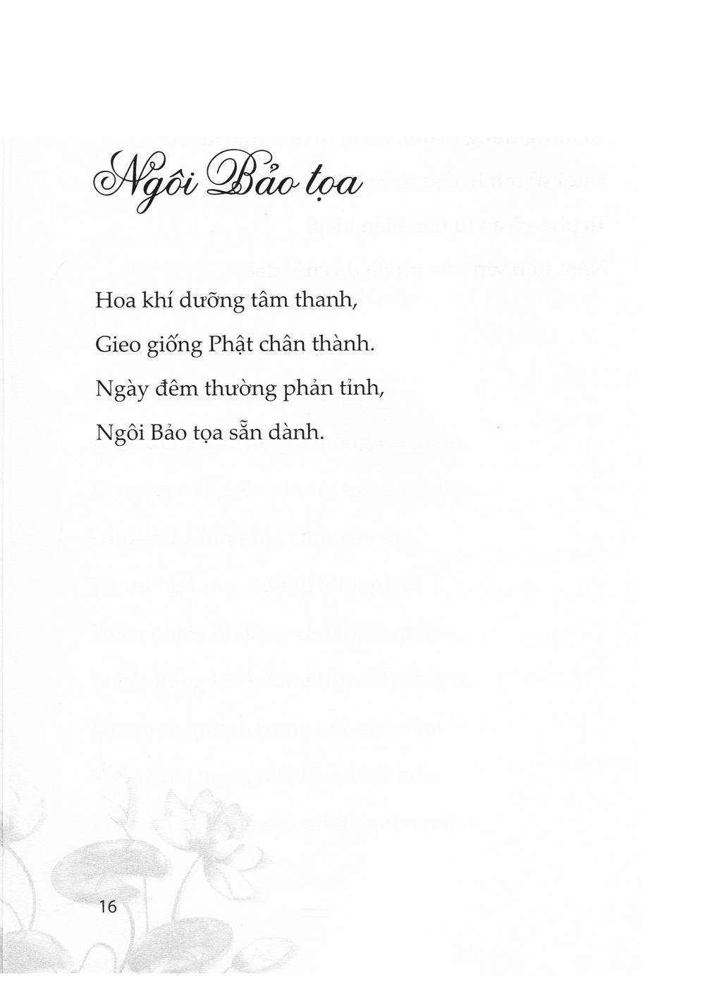 Xin thành tâm chúc mừng quý vị đã may mắn có tác phẩm trên tay. Xin đê đầu đảnh lễ trước Sư bà Thích Nữ Giác Liên và nguyện mong sư bà thật khỏe mạnh để làm chỗ dựa vững chắc cho chúng con, để thay mặt đức Phật đưa đường chỉ lối cho chúng con. Để đèn chân lý luôn sáng. Cả ngày lẫn đêm.