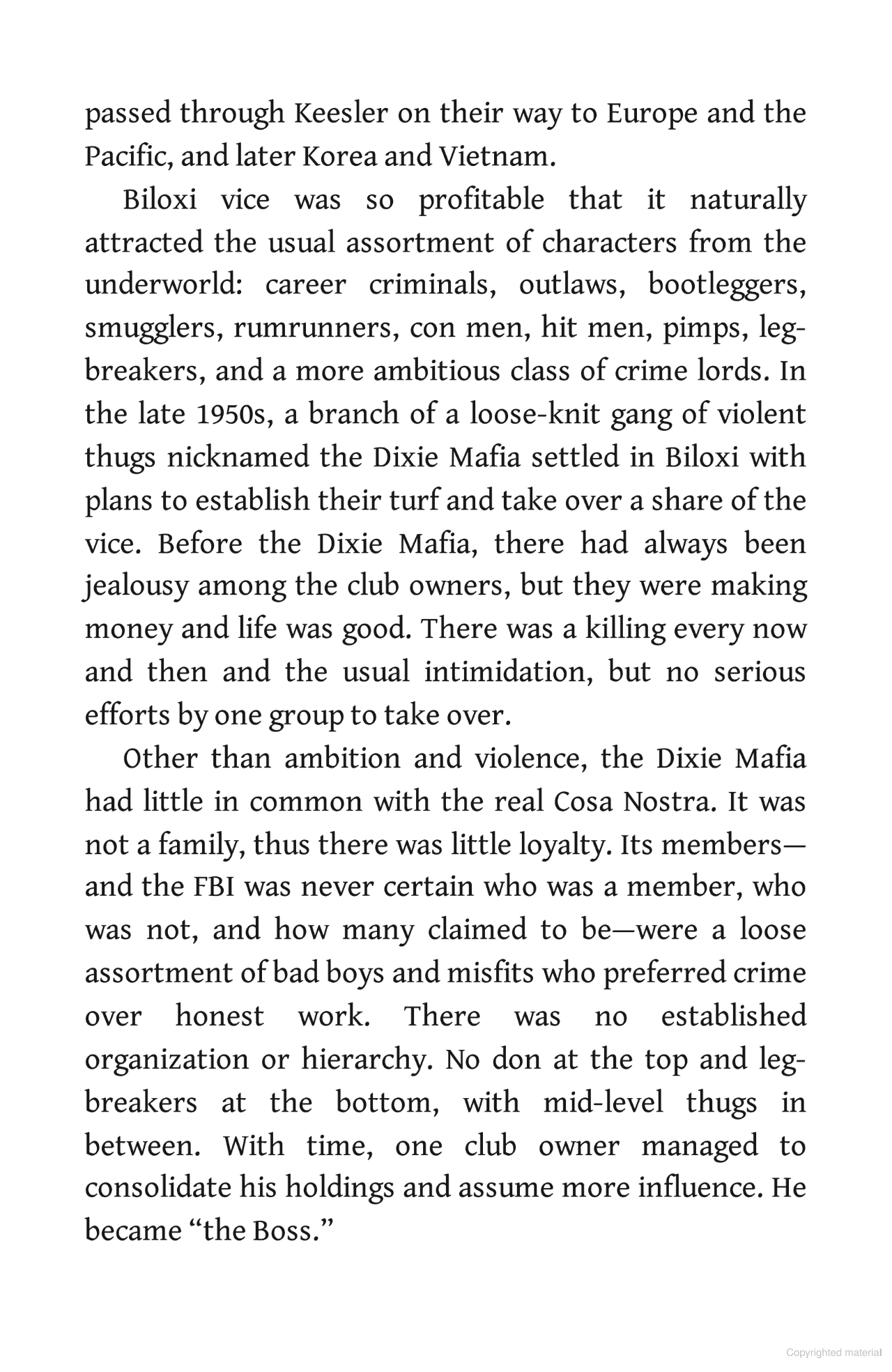 For most of the last hundred years, Biloxi was known for its beaches, resorts, and seafood industry. But it had a darker side. It was also notorious for corruption and vice, everything from gambling, prostitution, bootleg liquor, and drugs to contract killings. The vice was controlled by small cabal of mobsters, many of them rumored to be members of the Dixie Mafia.